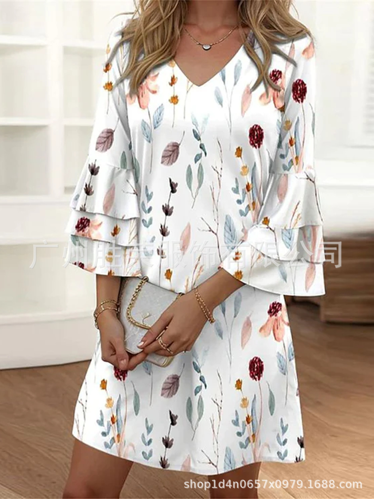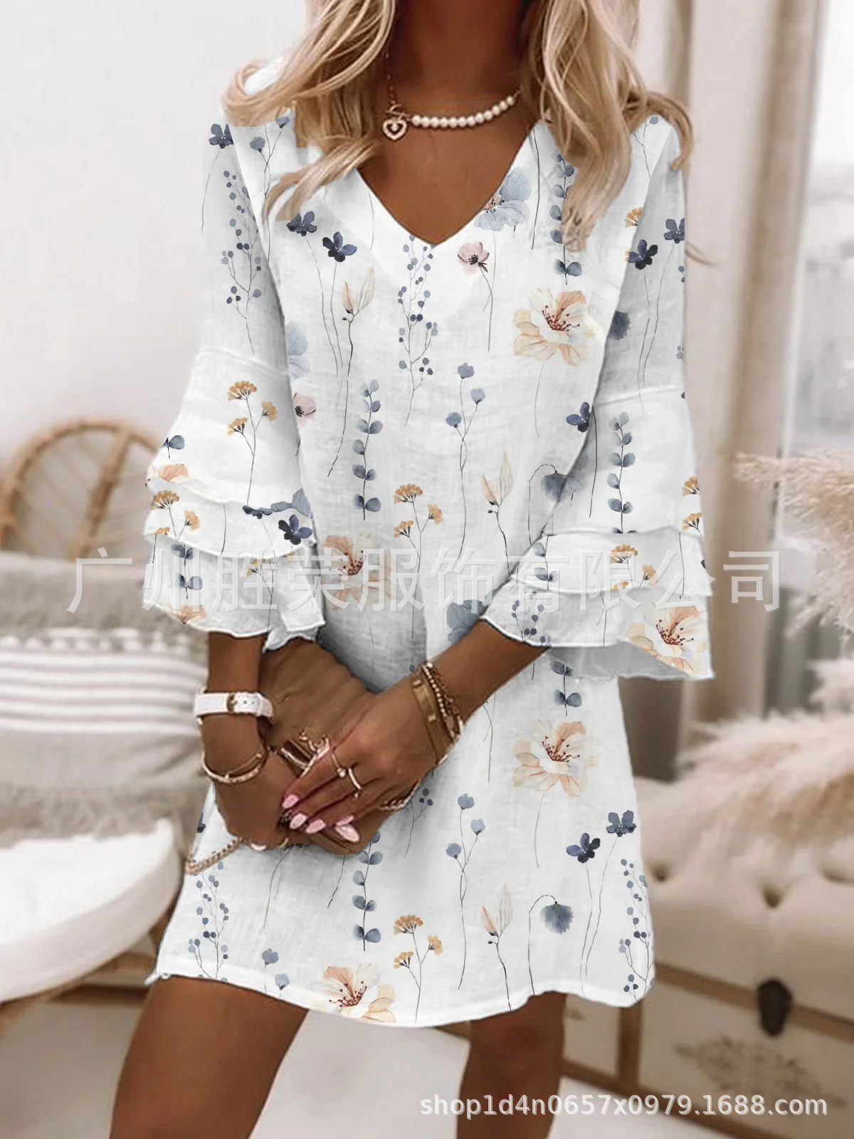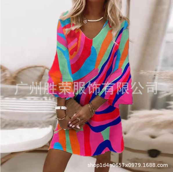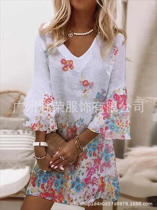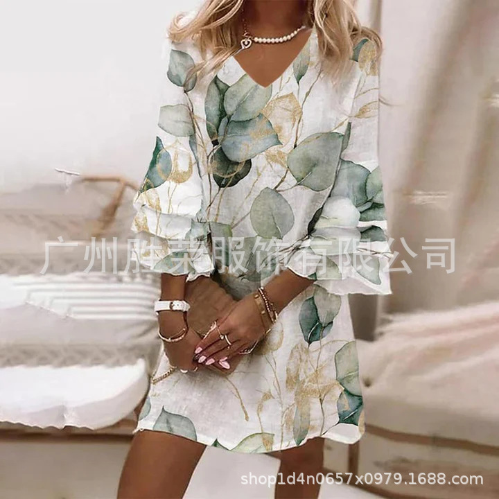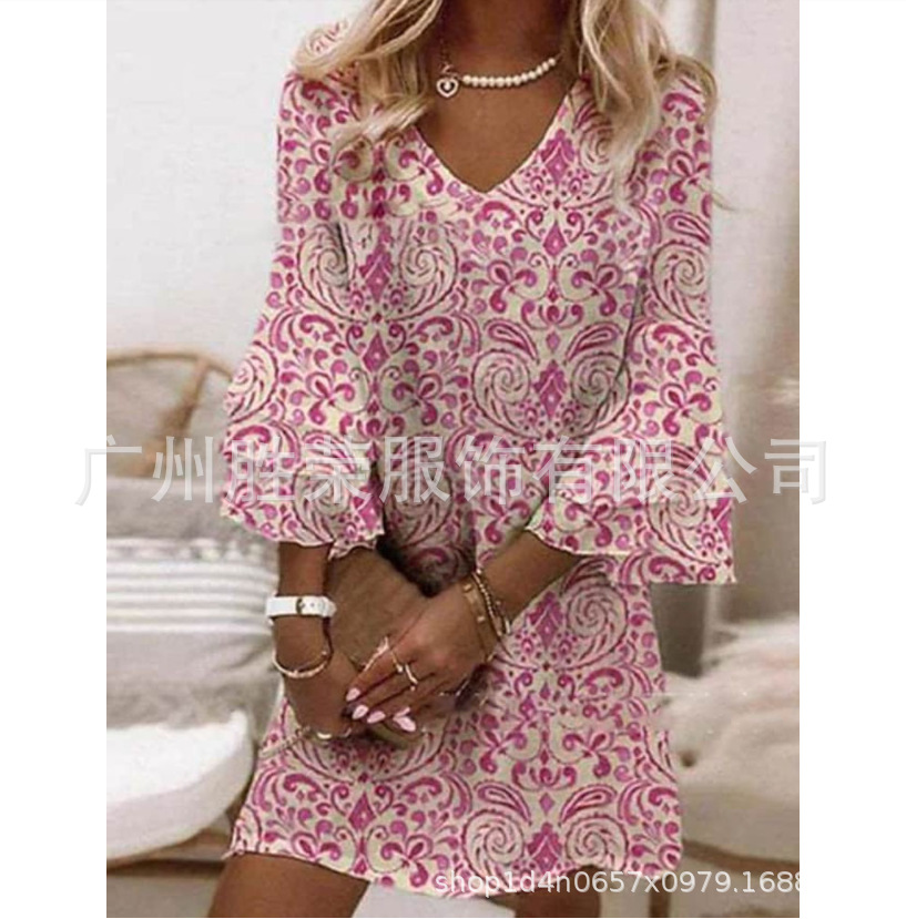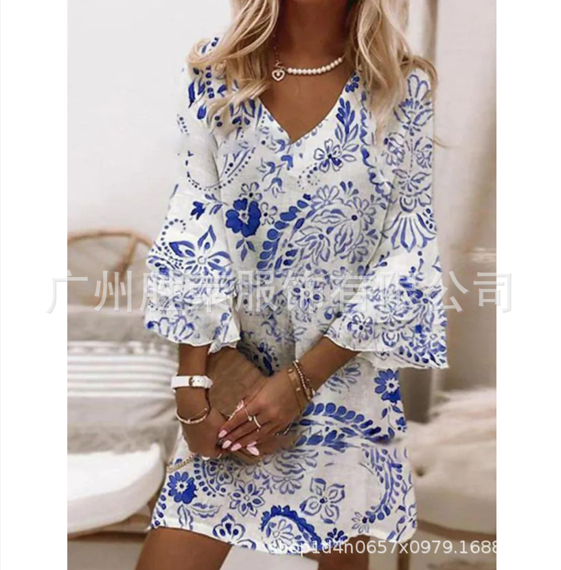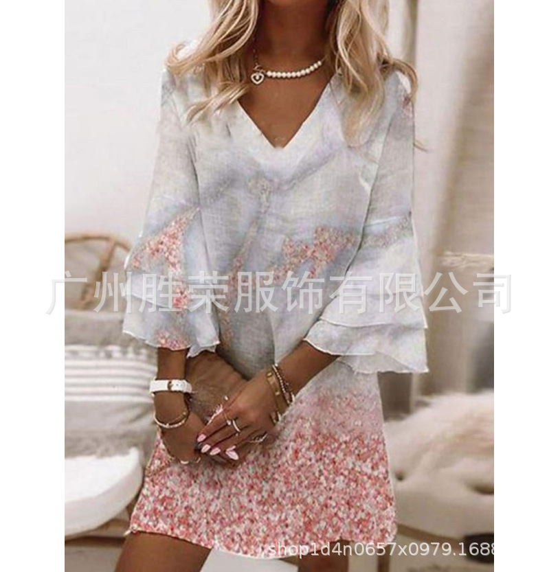 2024 새로운 국경 무역 유럽과 미국 여성의 봄과 여름 클래식 3 층 소매 포지셔닝 디지털 인쇄 원피스스토어 가기