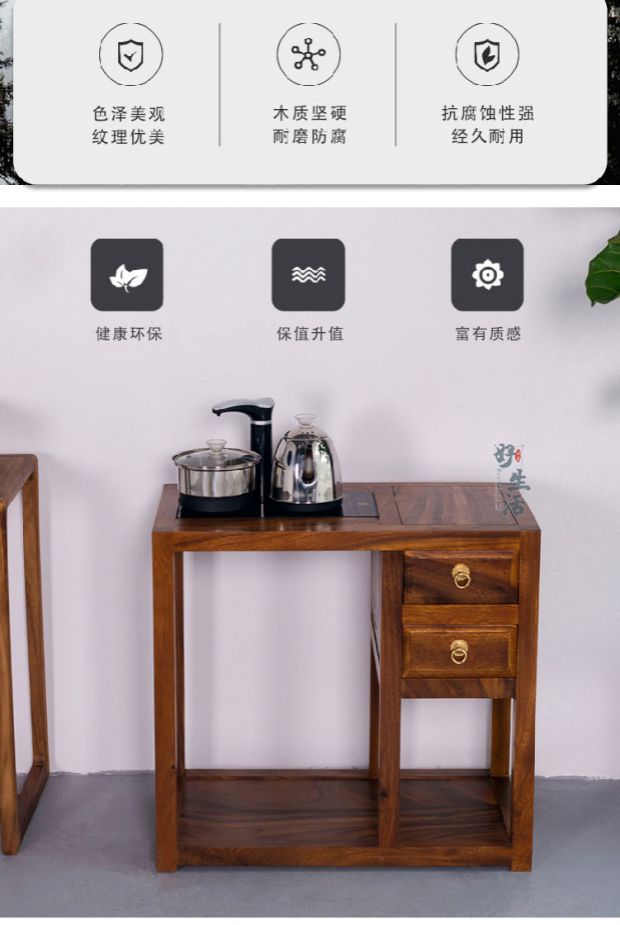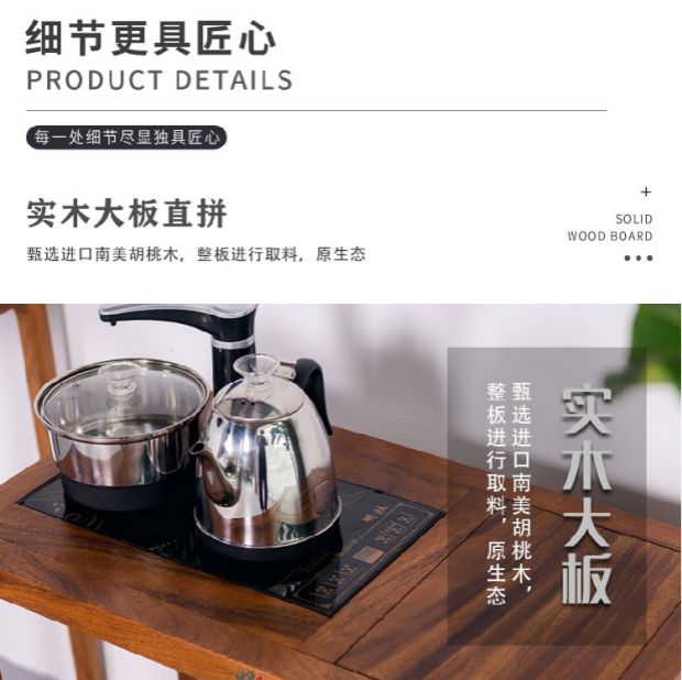 호두 차 테이블 단단한 나무 차 캐비닛 주전자 통합 세트 가정용 거실 새로운 중국 스타일 모바일 차 캐비닛 사이드 테이블스토어 가기