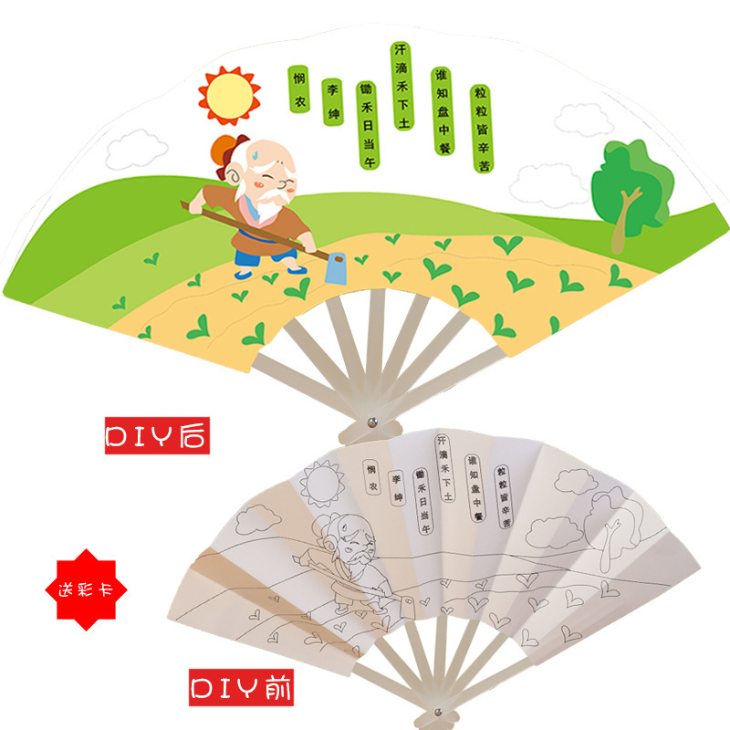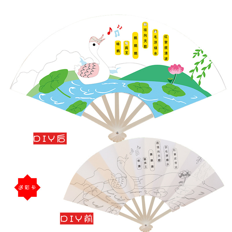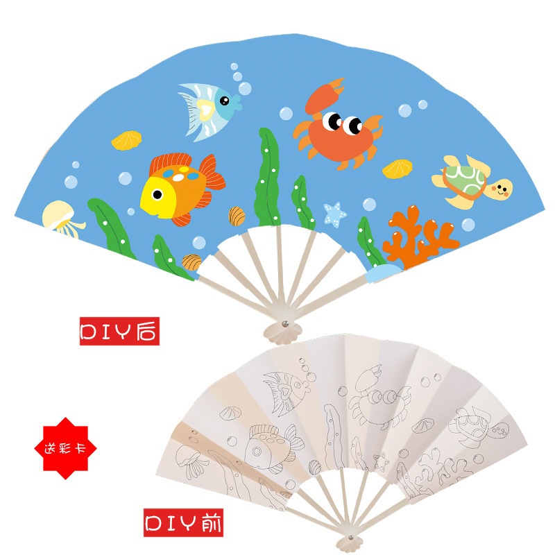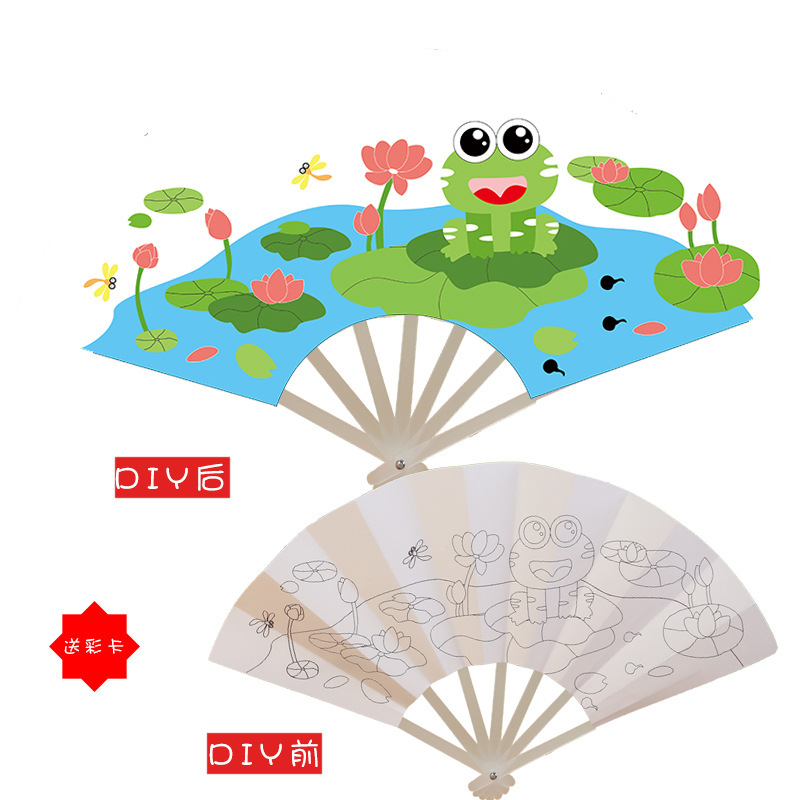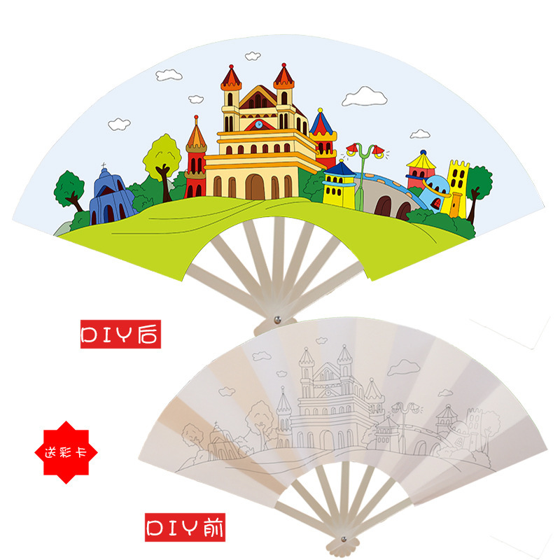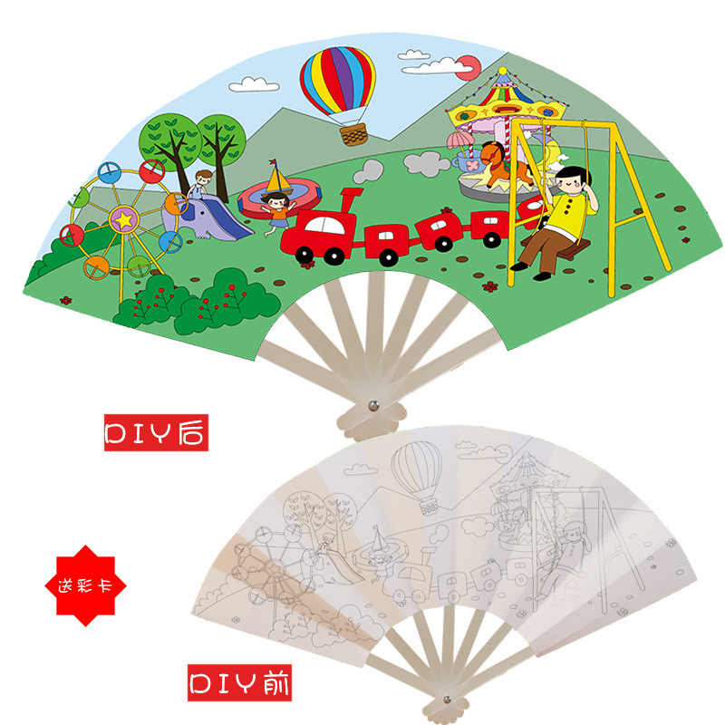 7inch 무지 종이 부채 접이식 부채 어린이 DIY 그림 부채 유치원 수제 그림 부채