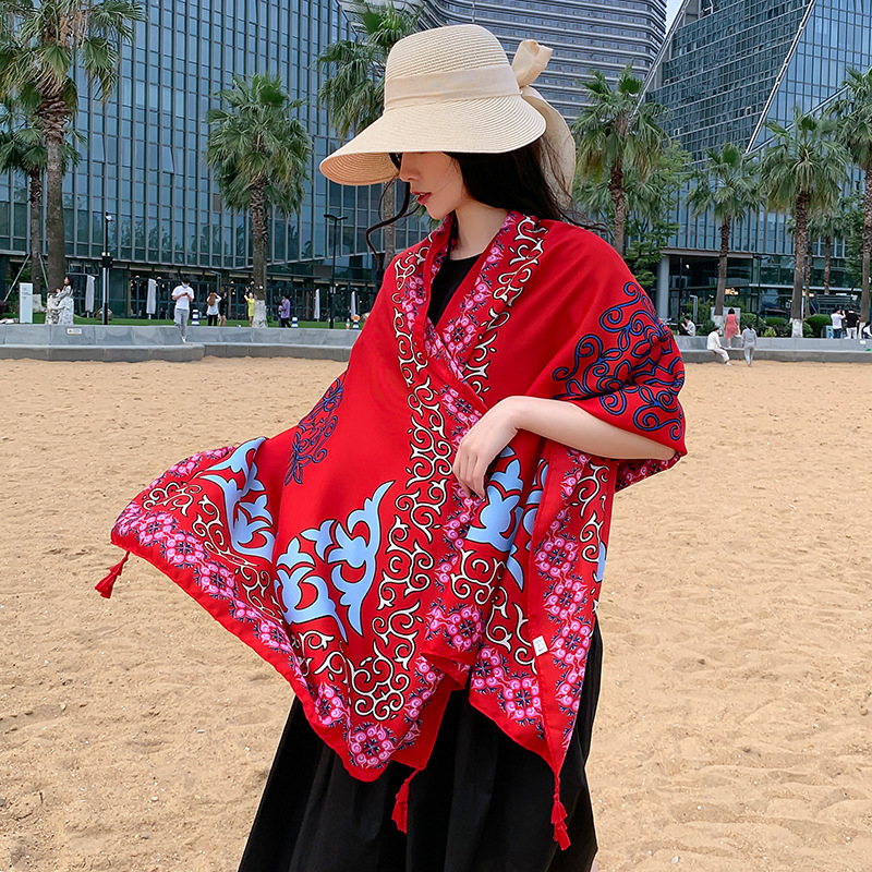 여름 새로운 차양 태양 보호 레저 놀이 비치 타올 UV 보호 스카프 레트로 패션 여성 스카프 숄