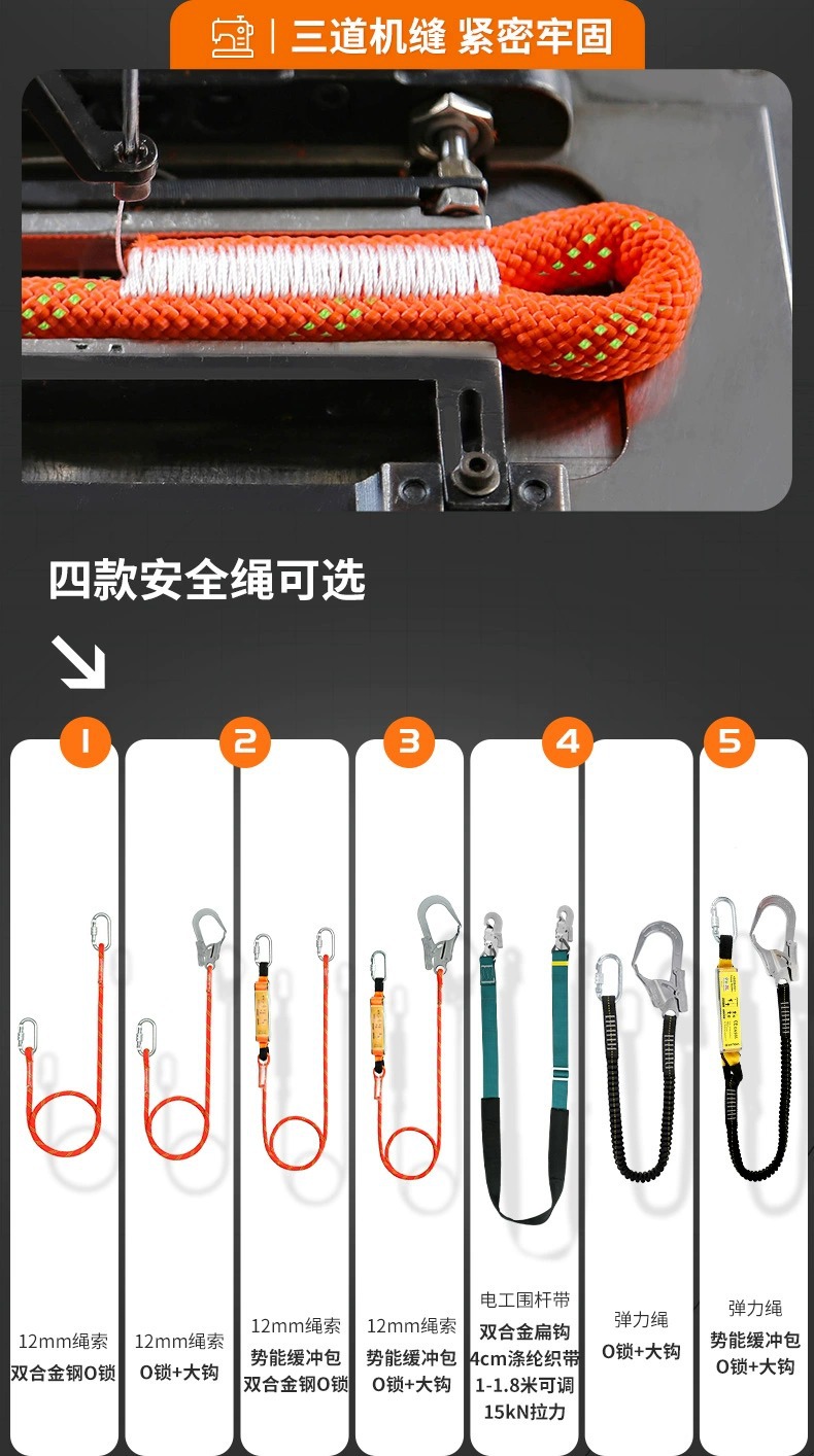 • 5 점 고고도 안전 벨트 + 탄성 로프 더블 후크