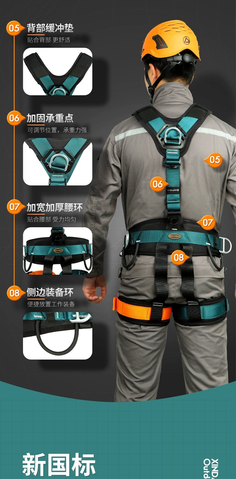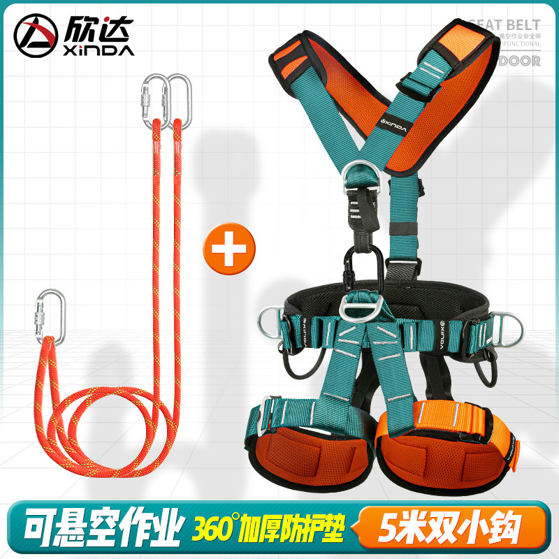 전신 5 점 공중 작업 안전 벨트 암벽 등반 구조 에어컨 설치 안전 로프 풀 세트 새로운 국가 표준스토어 가기