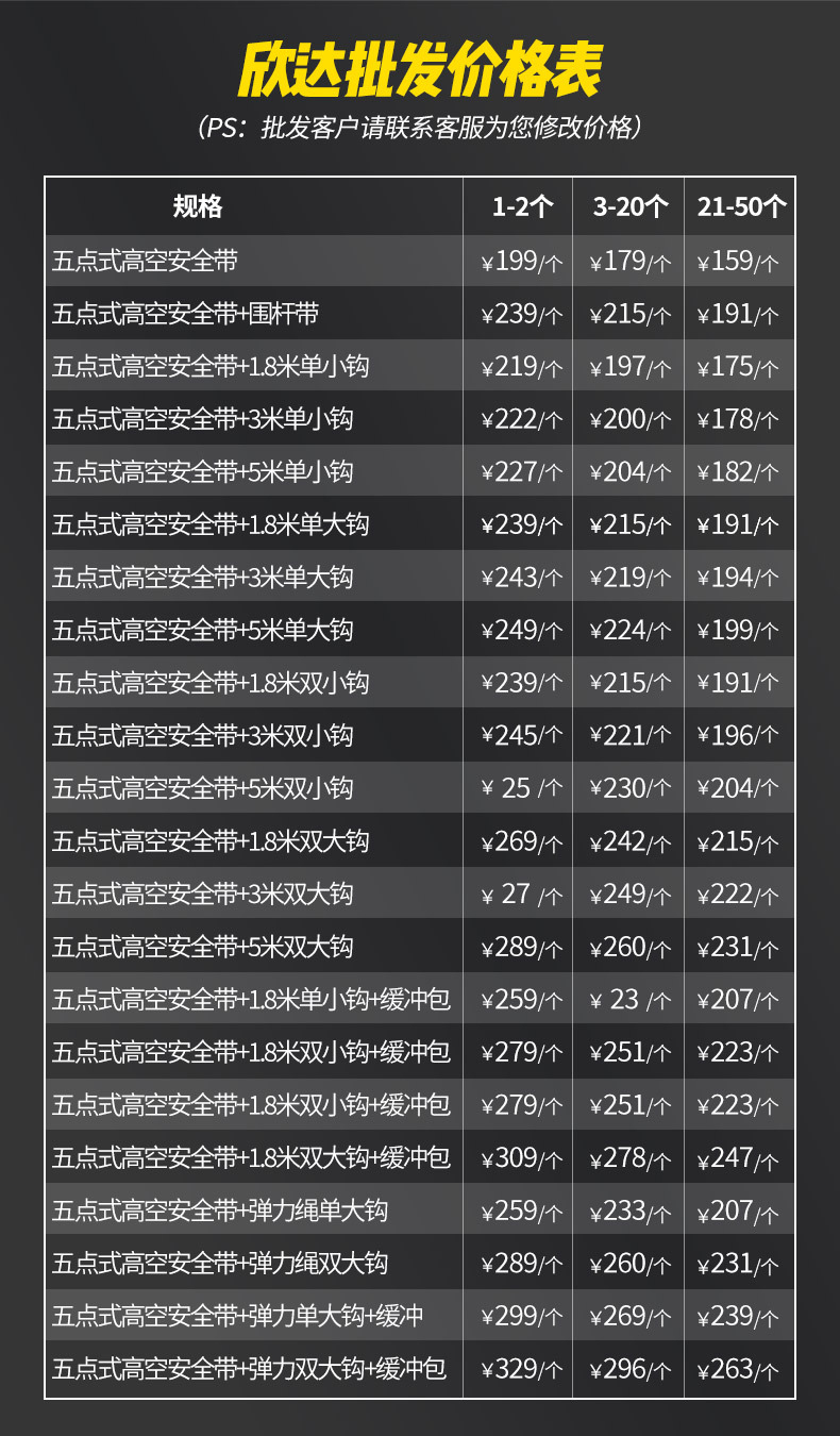 • 5 점 고도 안전 벨트 + 1.8 m 이중 소형 후크