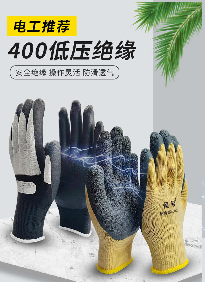 400v 전기 절연 장갑 380v 저전압 안티 전기 라이브 작업 고무 220v 얇은 유연한 미끄럼 방지 도매스토어 가기