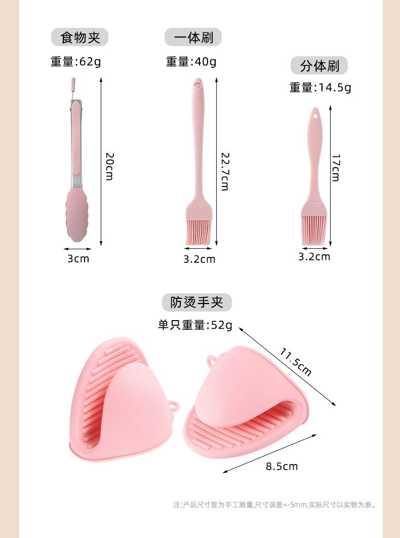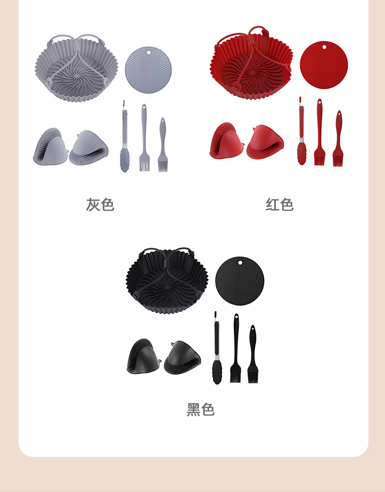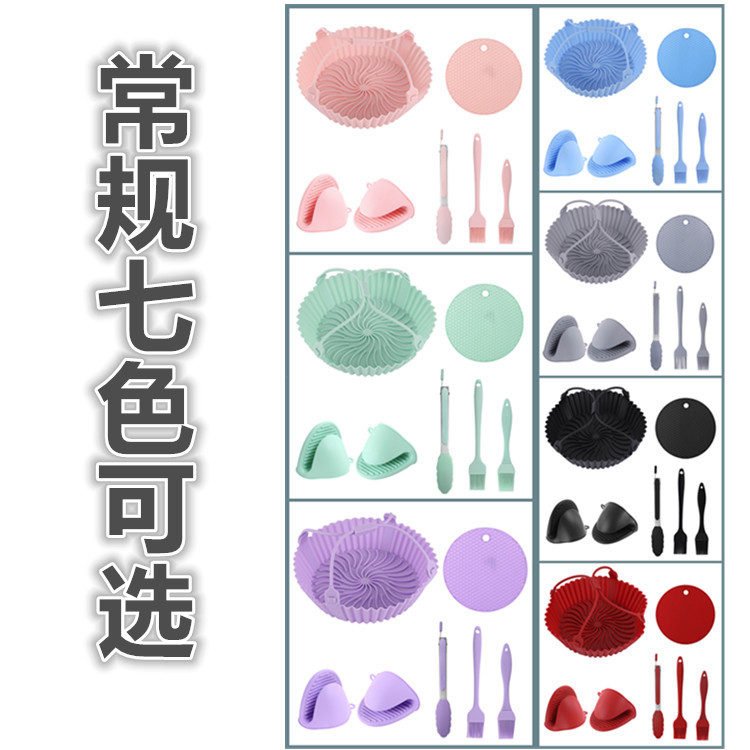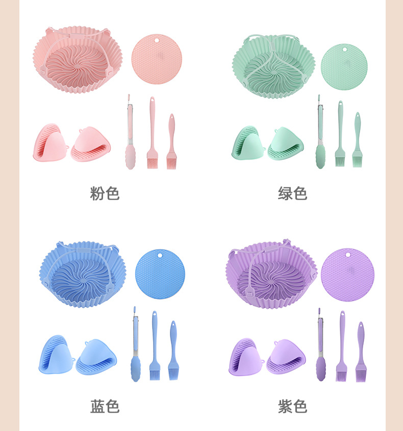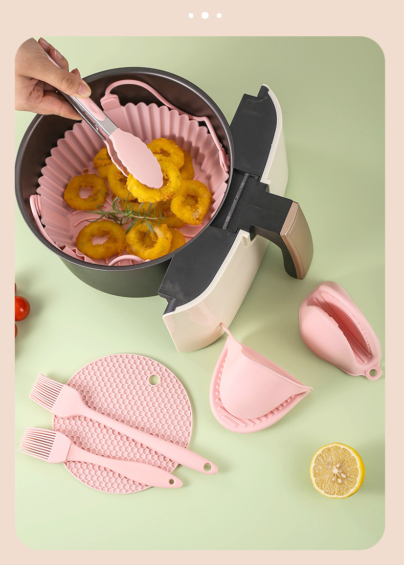 실리콘 에어 프라이어 베이킹 팬 케이크 베이킹 팬 전자 레인지 트레이 음식 클립 오일 브러시 화상 방지 핸드 클립 DIY 세트