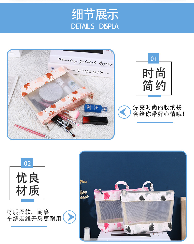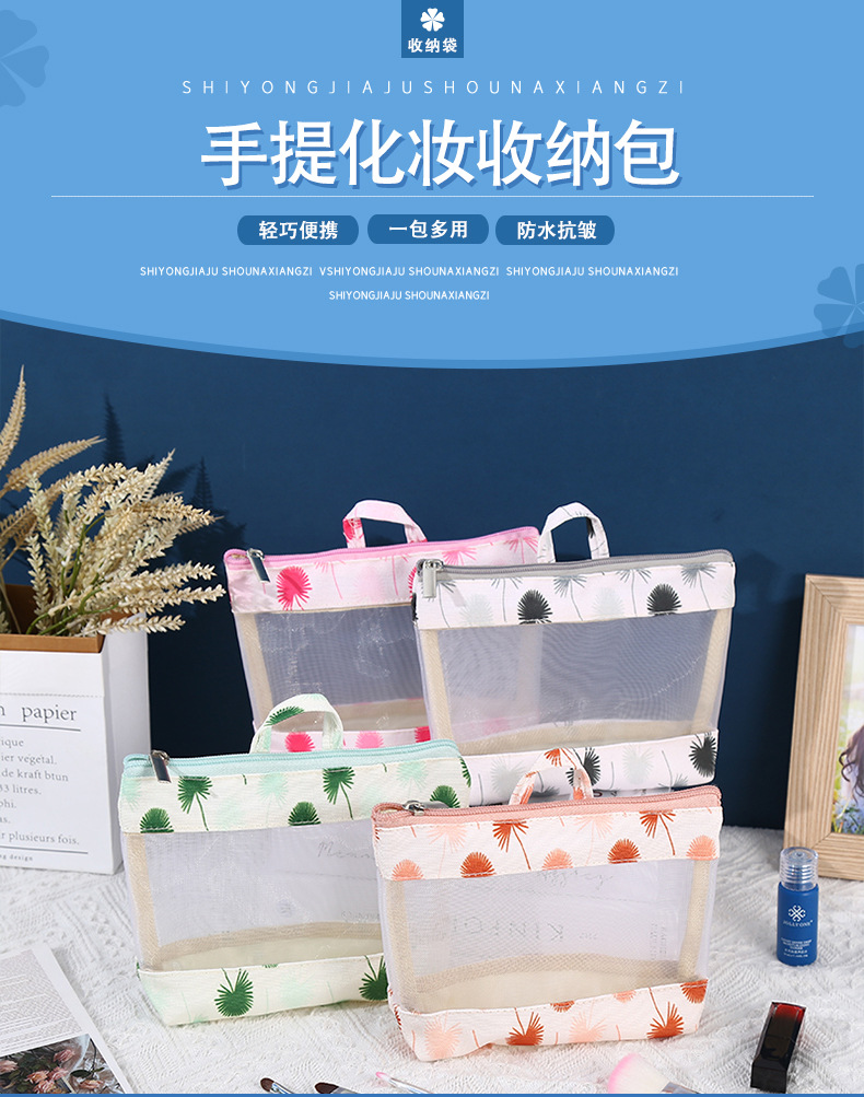 메쉬 휴대용 메이크업 보관 가방 인쇄 지퍼 가방 여행 세척 가방 여행 휴대용 경량 가방 광고 사용자 정의스토어 가기