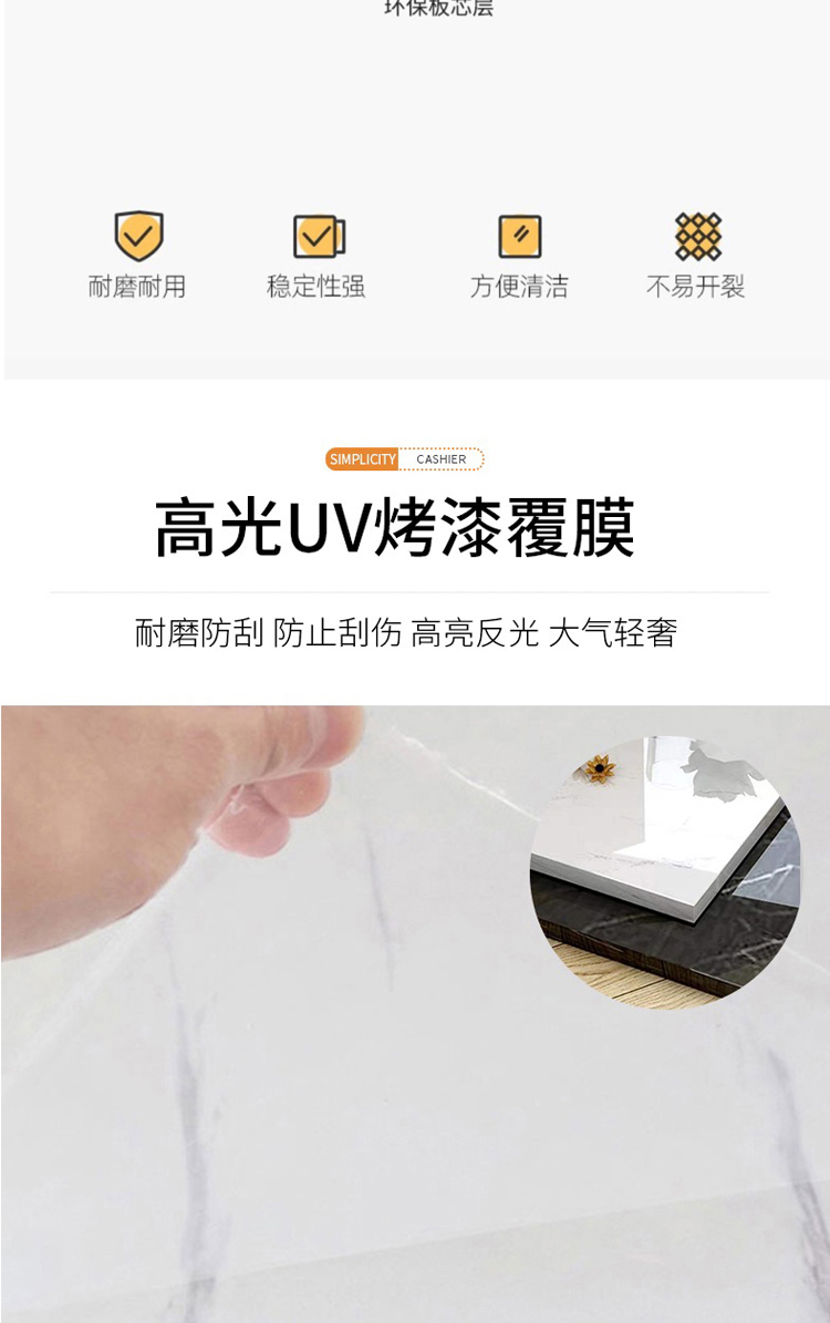 • 펄 화이트 + 블랙 스톤 패턴 오른쪽 캐비닛 높은 광택