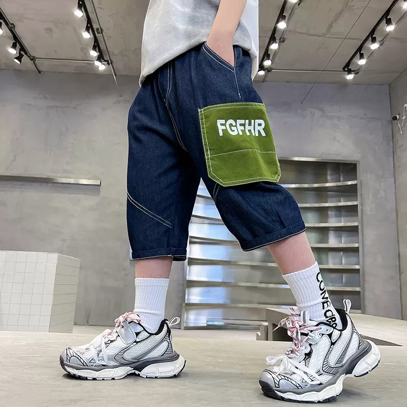 남아 데님 반바지 큰 아이를 위한 새로운 스타일 중간 길이 여름 얇은 바지 여름 반 길이 바지 남아 느슨한 할란 유행 브랜드