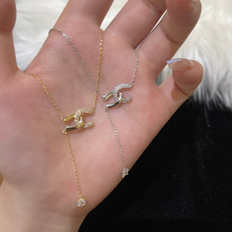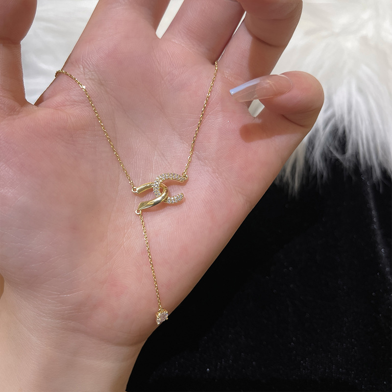 [골드 + 지르콘] S925 마이크로 상감 더블 C 워드 패션 쇄골 목걸이 여성 개성 조수 새로운 쇄골 체인 여름스토어 가기