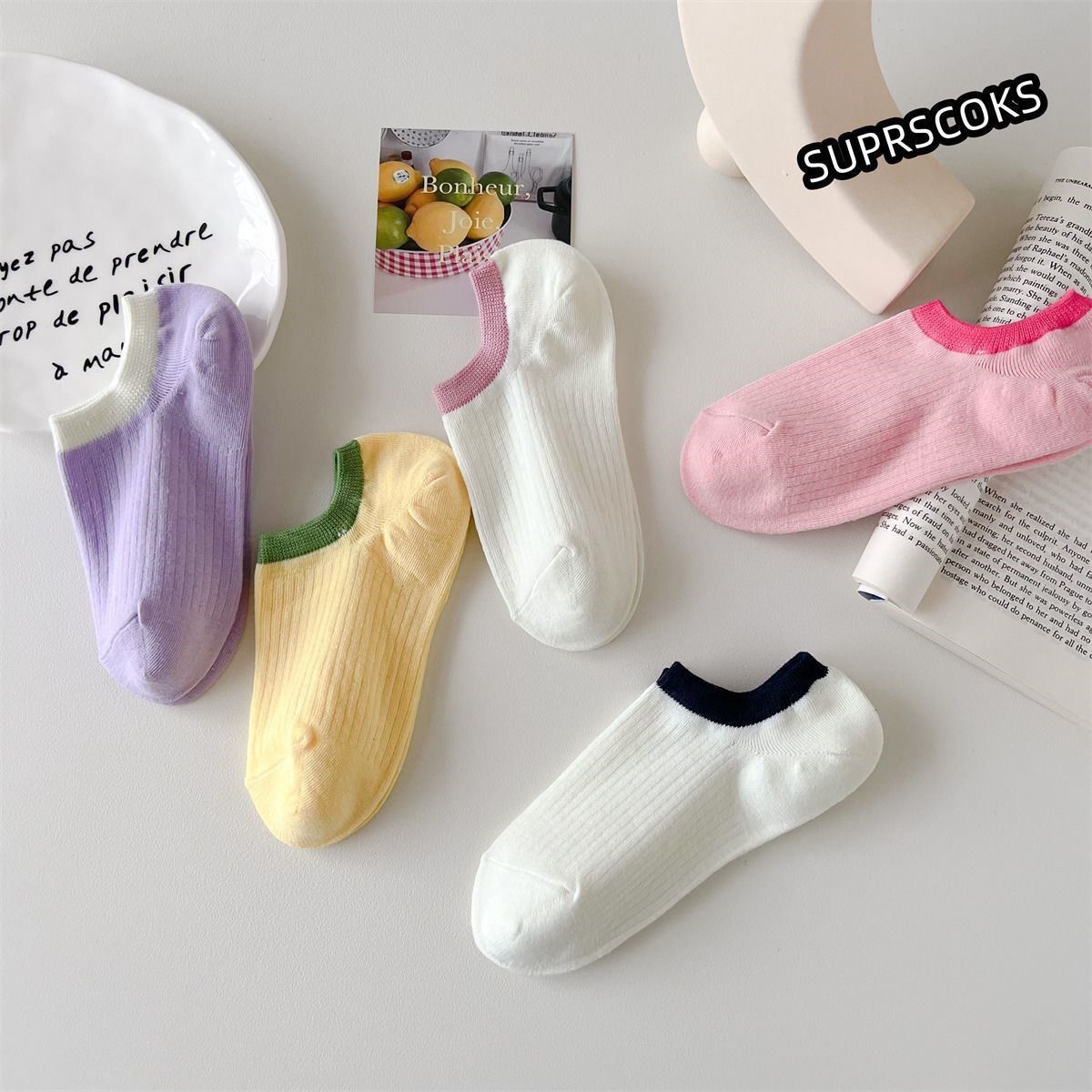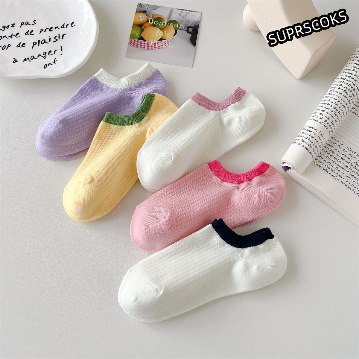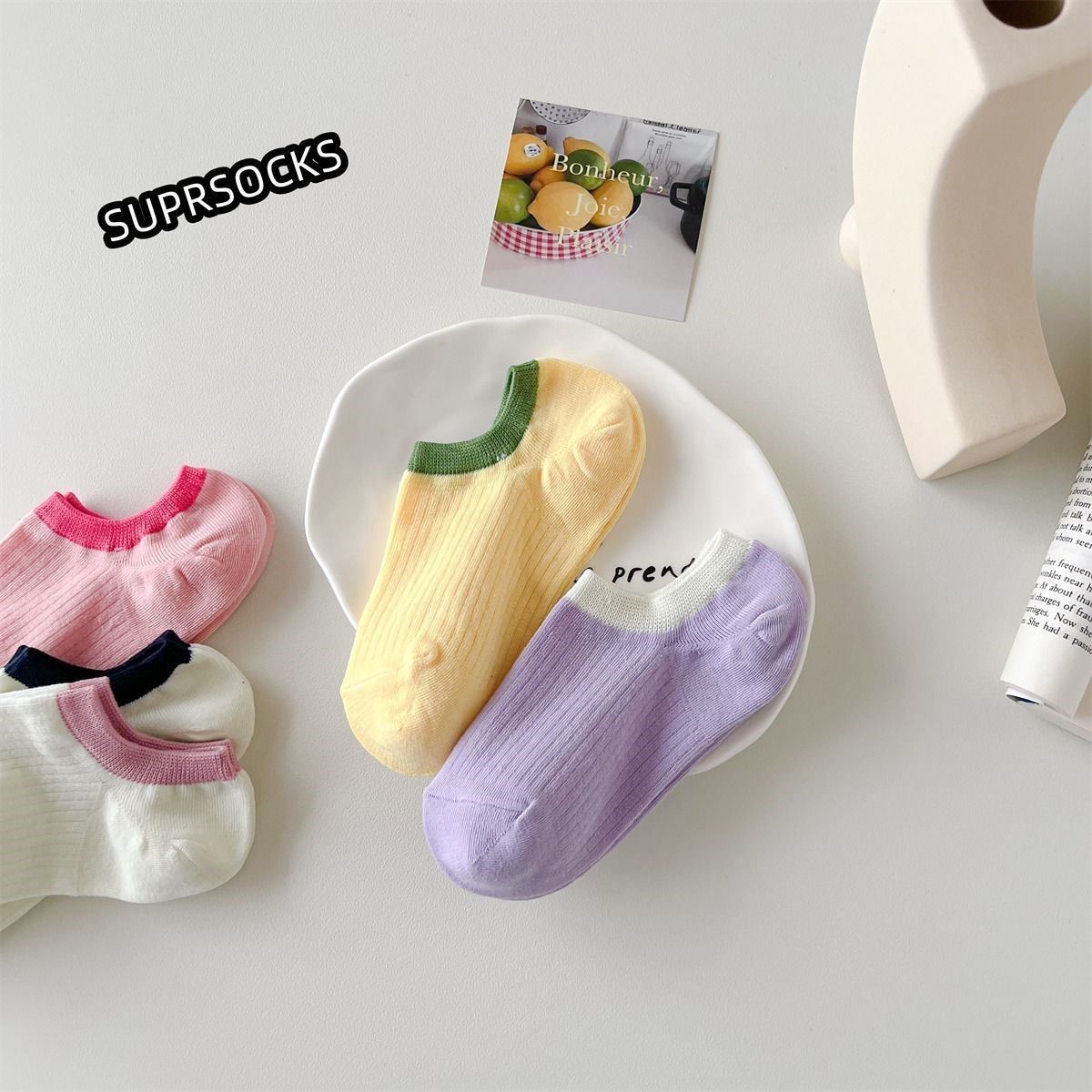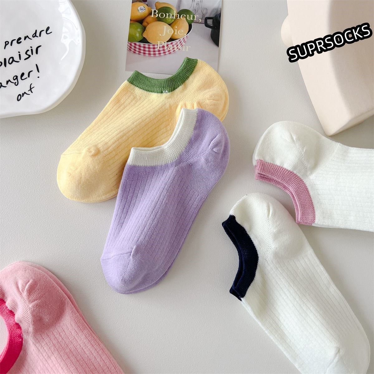 여름 모리 보트 양말 대비 색상 양말 여성용 작은 빨간 승마 책 같은 스타일 실리콘 미끄럼 방지 짧은 양말 트렌디에 모든 일치스토어 가기