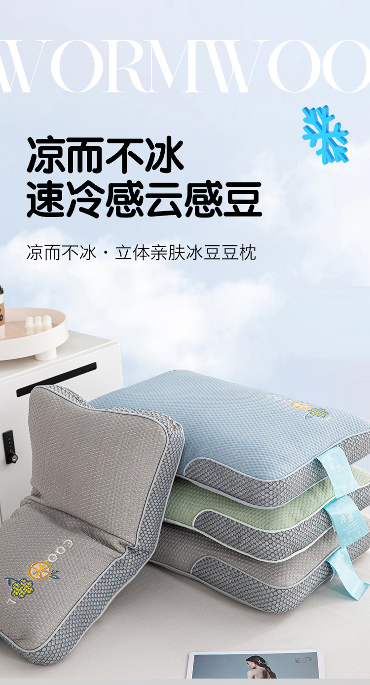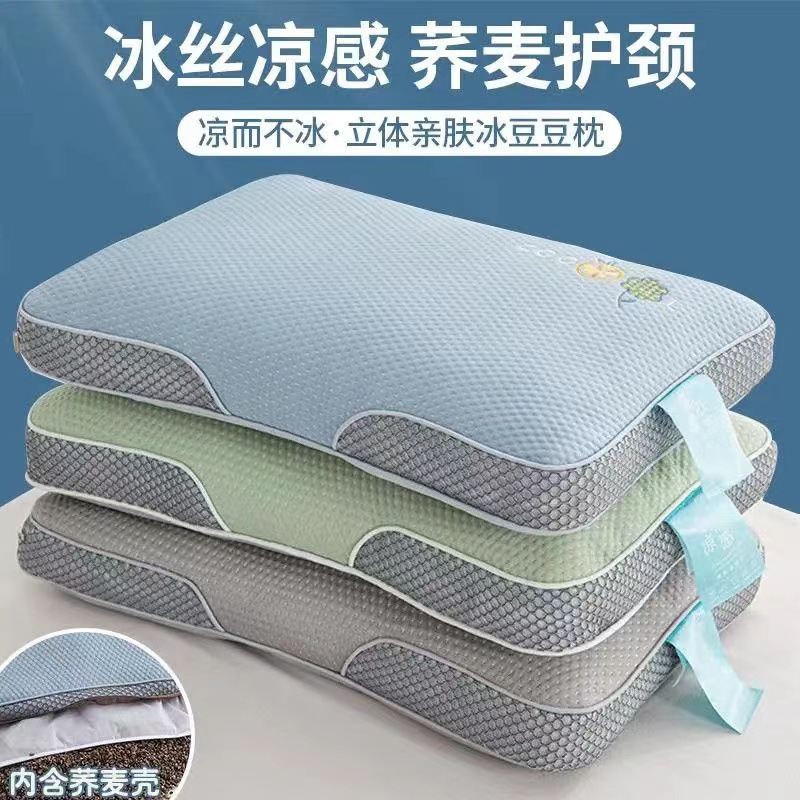 여름 아이스 실크 시원한 느낌 콩 베개 싱글 학생 어린이 통기성 베개 코어 낮은 베개 탈착식 빨 도매스토어 가기