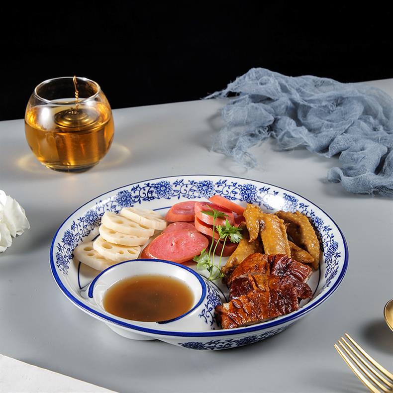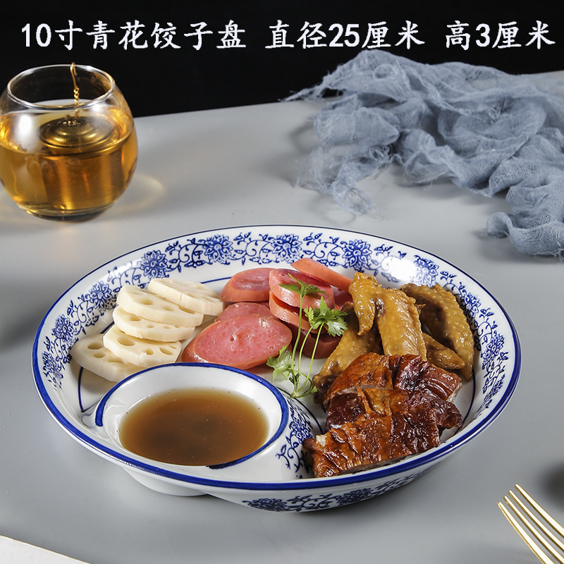 • 파란색과 흰색 10 인치 원형 만두 접시