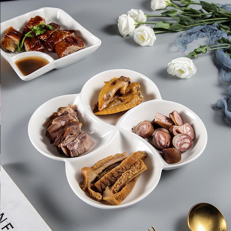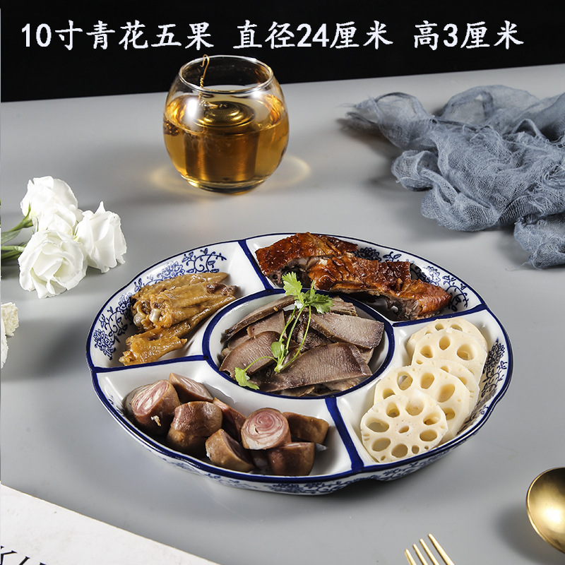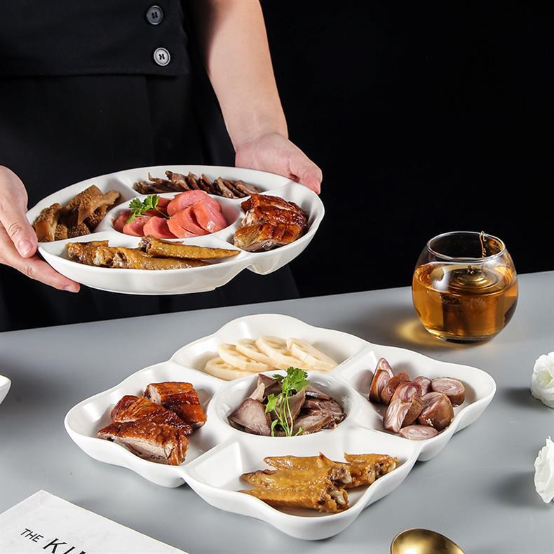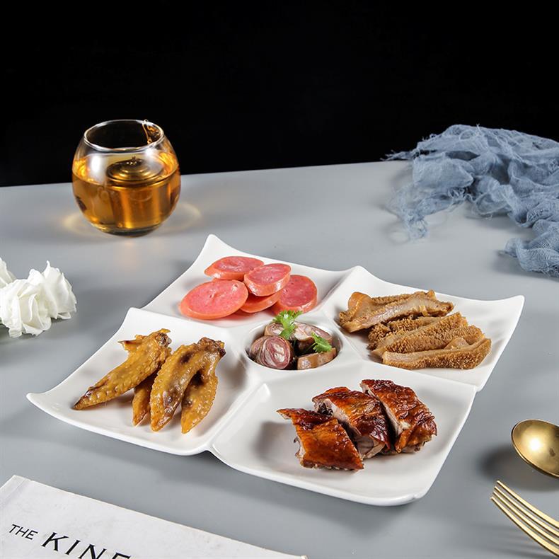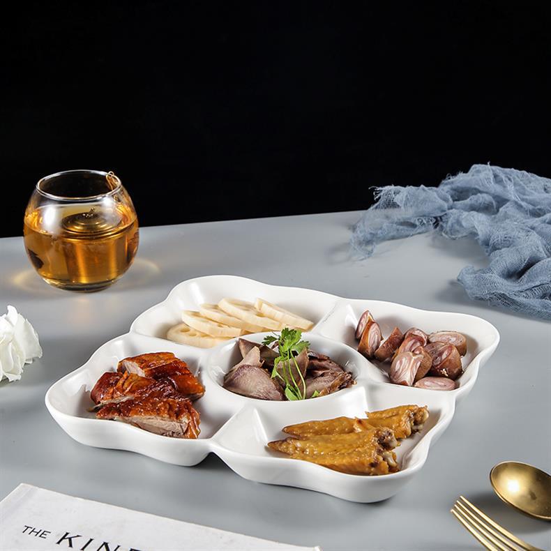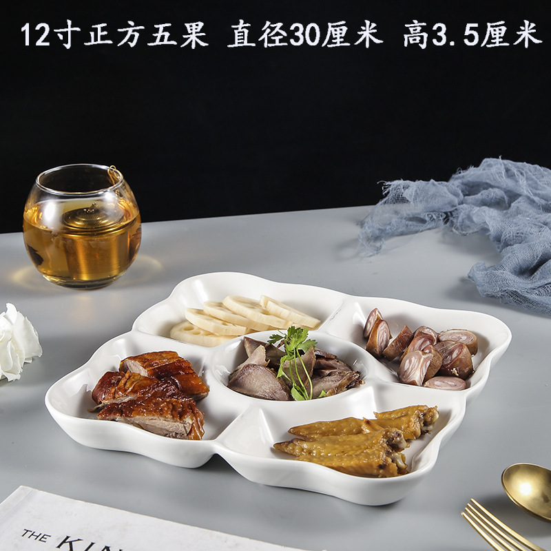 호텔 및 호텔을위한 브라인 플래터 특별 접시 말린 과일 스낵 스낵 분할 접시 멀티 그리드 5 그리드 플레이트 세라믹 디너 플레이트