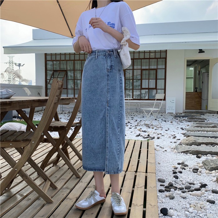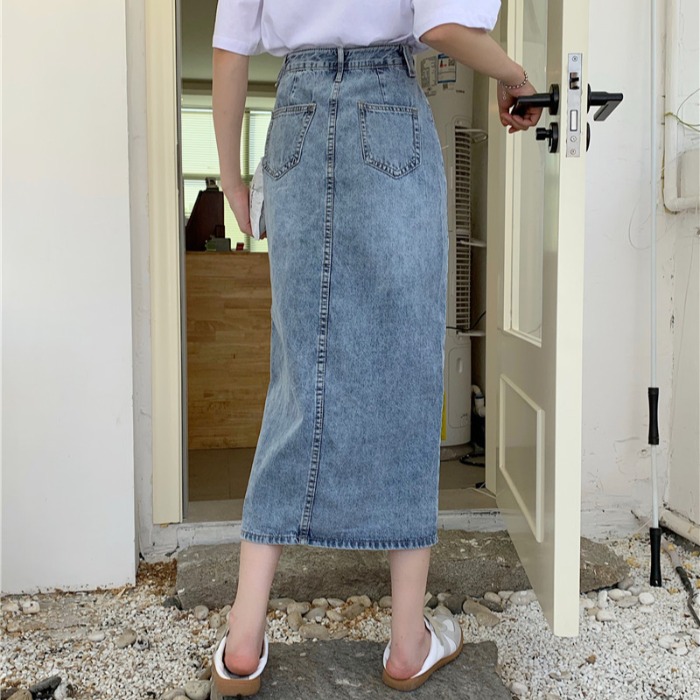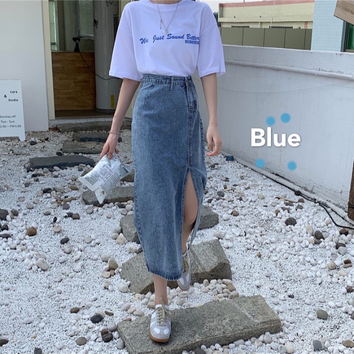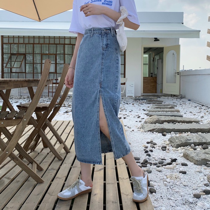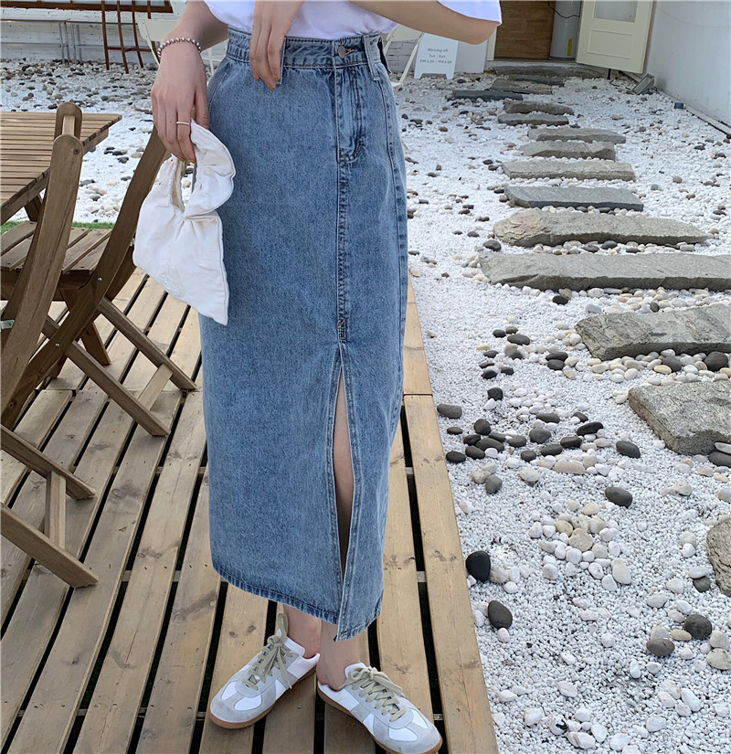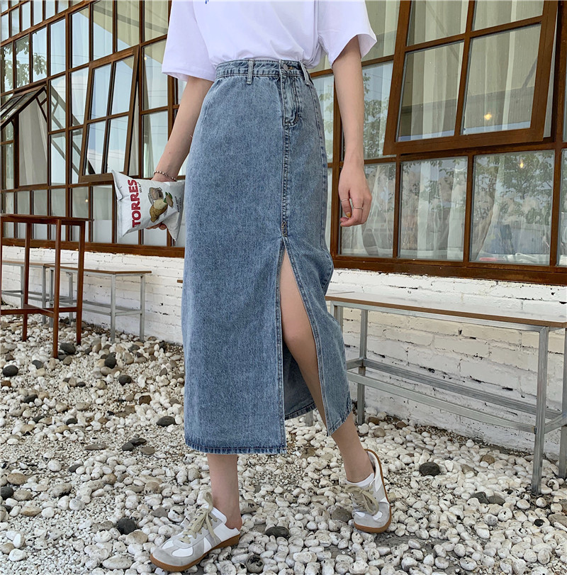 가을과 여름 2023 한국 스타일 스플릿 플러스 사이즈 통통녀 데님 스커트 여성 오버 니 힙 스플릿 하이 웨이스트 A 라인 스커트 트렌디스토어 가기