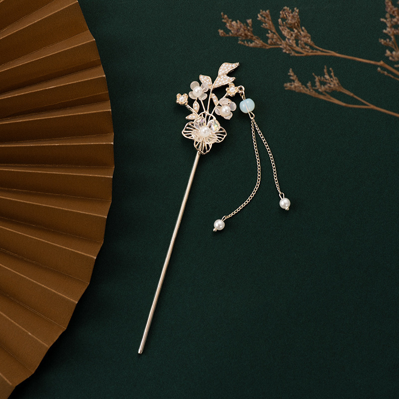 옥꽃 골동품 스타일 스윙 머리 머리핀 느낌 클래식 진주 한후 머리 머리술 청삼 머리 머리핀스토어 가기
