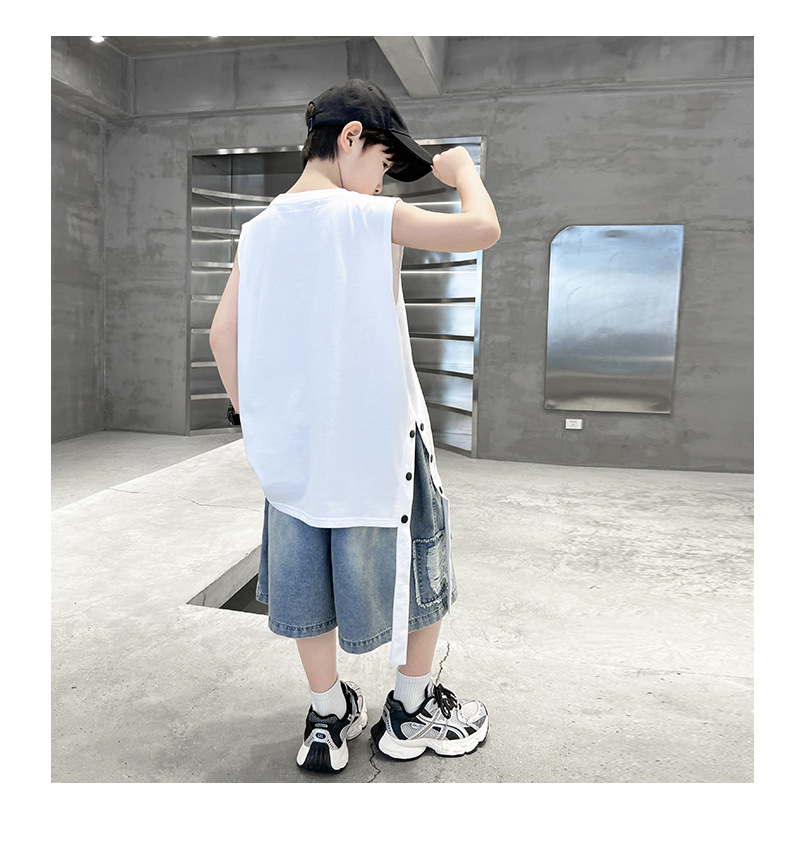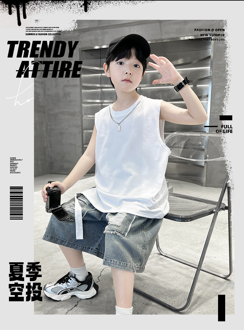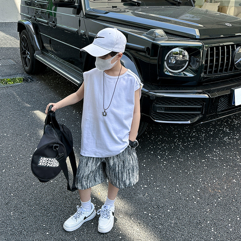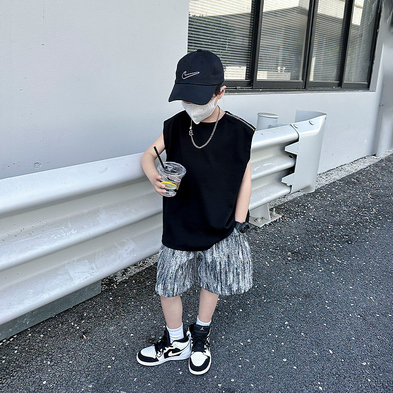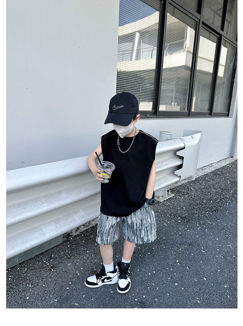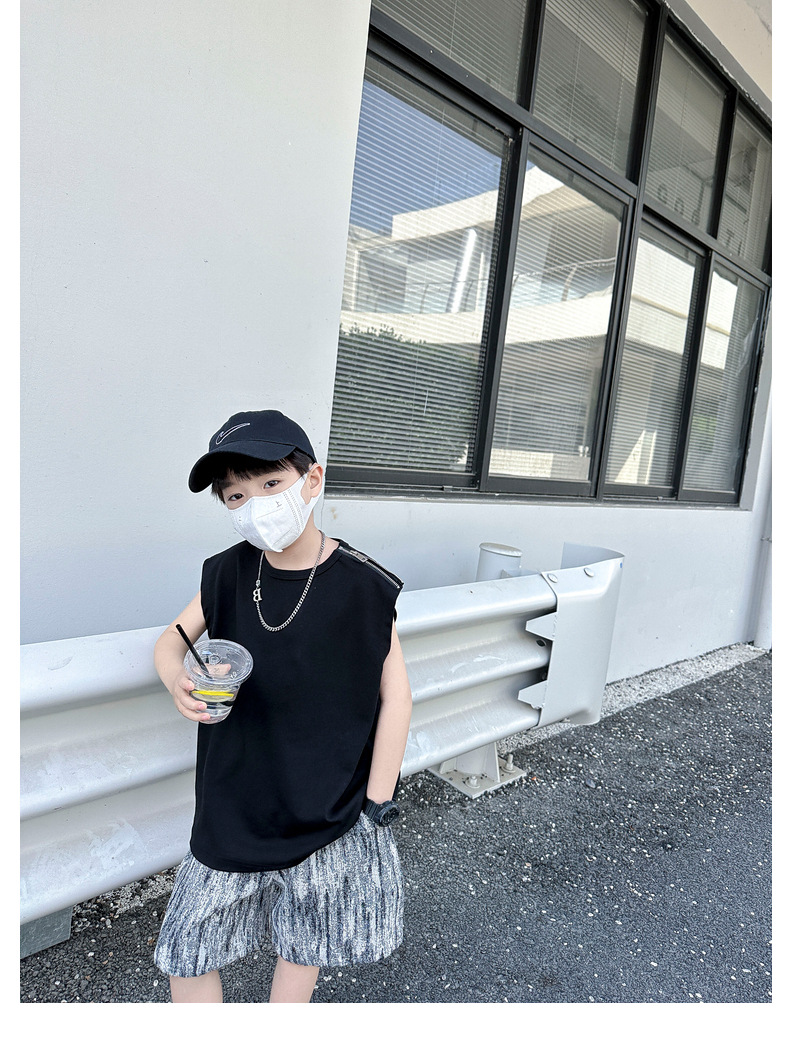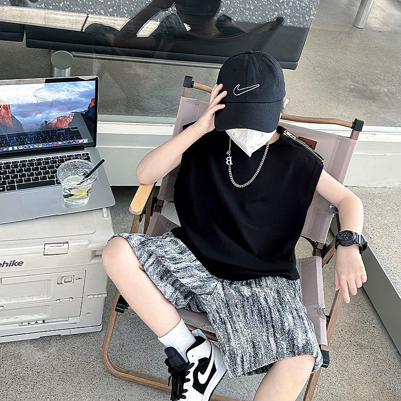여름용 큰 남자아이 지퍼 조끼 아동복 남자아이 단색 민소매 개성있는 트렌디하고 멋스러운 다용도 중대형 아동 여름용스토어 가기