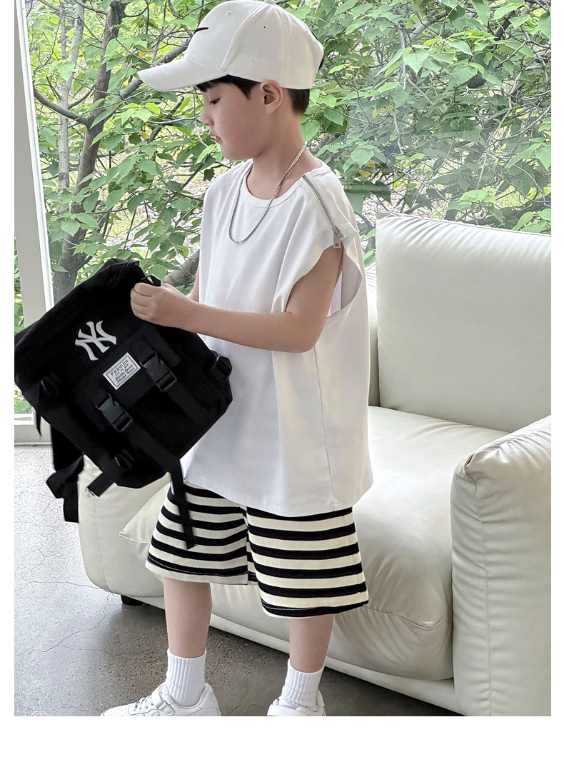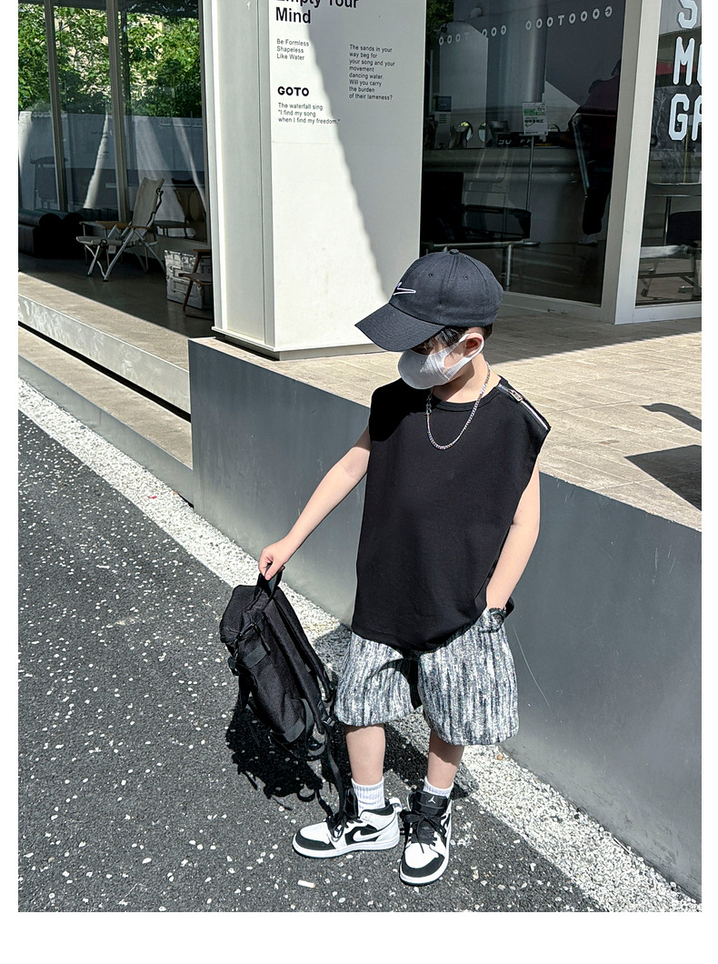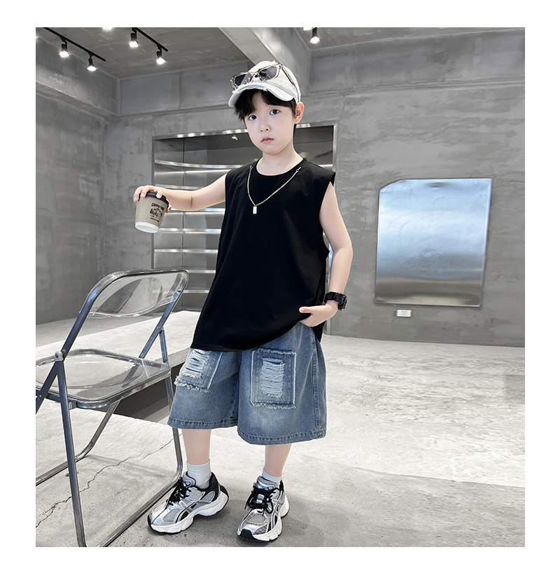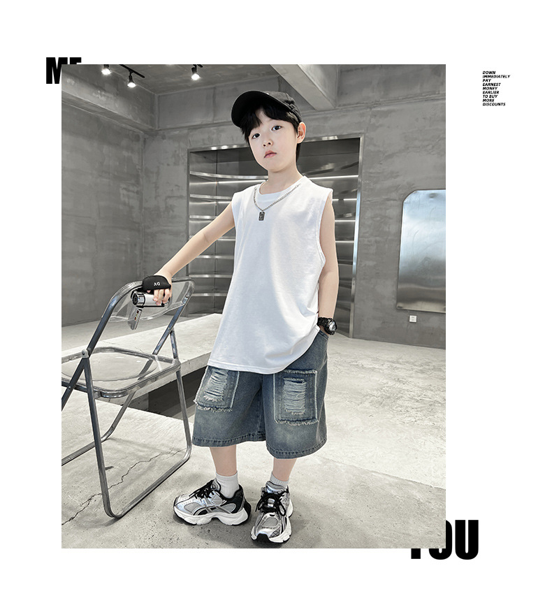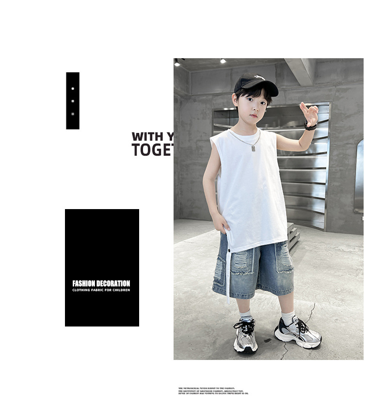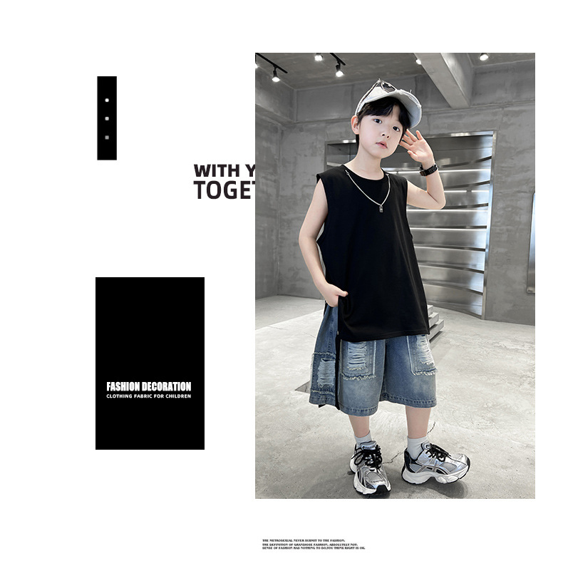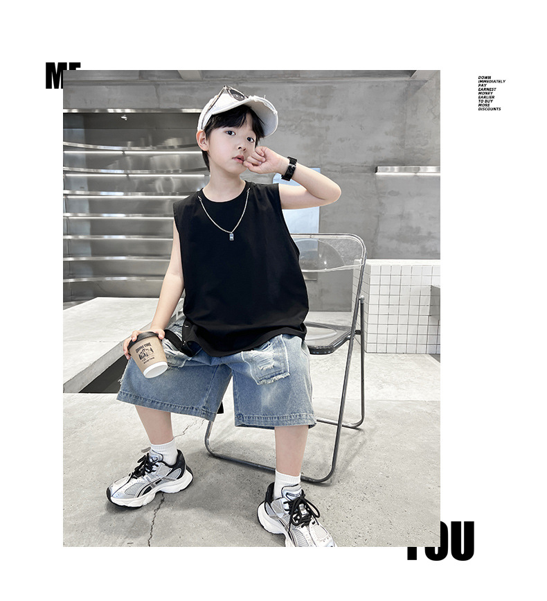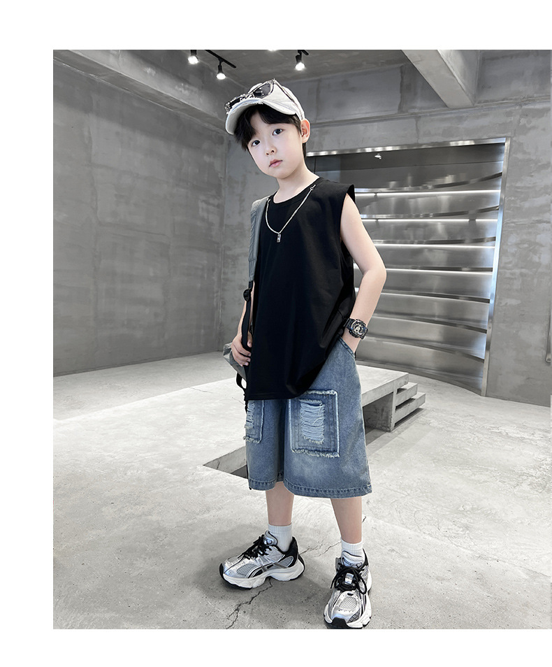 여름용 큰 남자아이 지퍼 조끼 아동복 남자아이 단색 민소매 개성있는 트렌디하고 멋스러운 다용도 중대형 아동 여름용스토어 가기