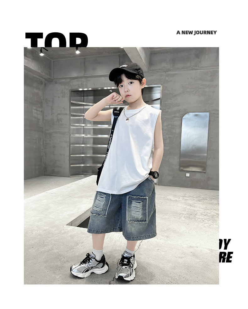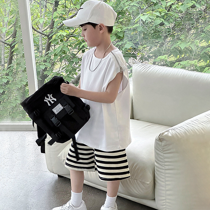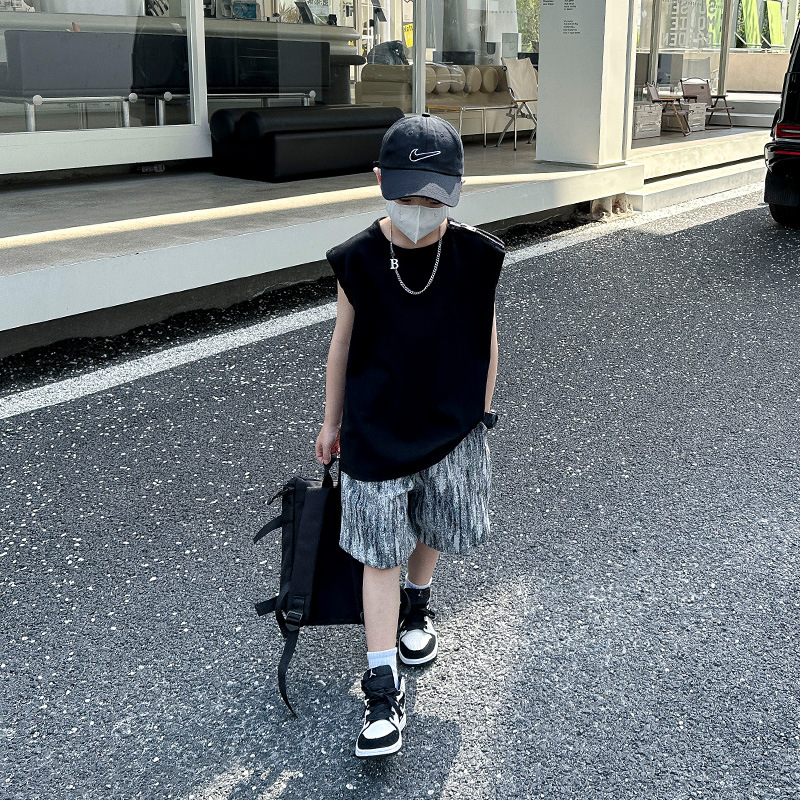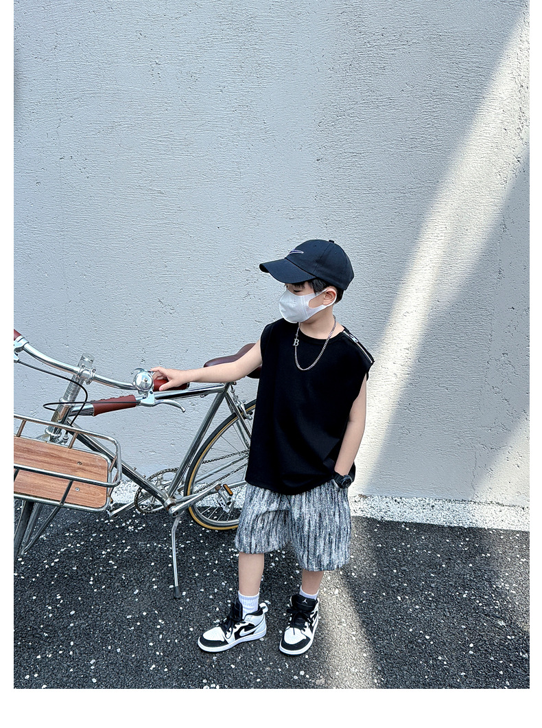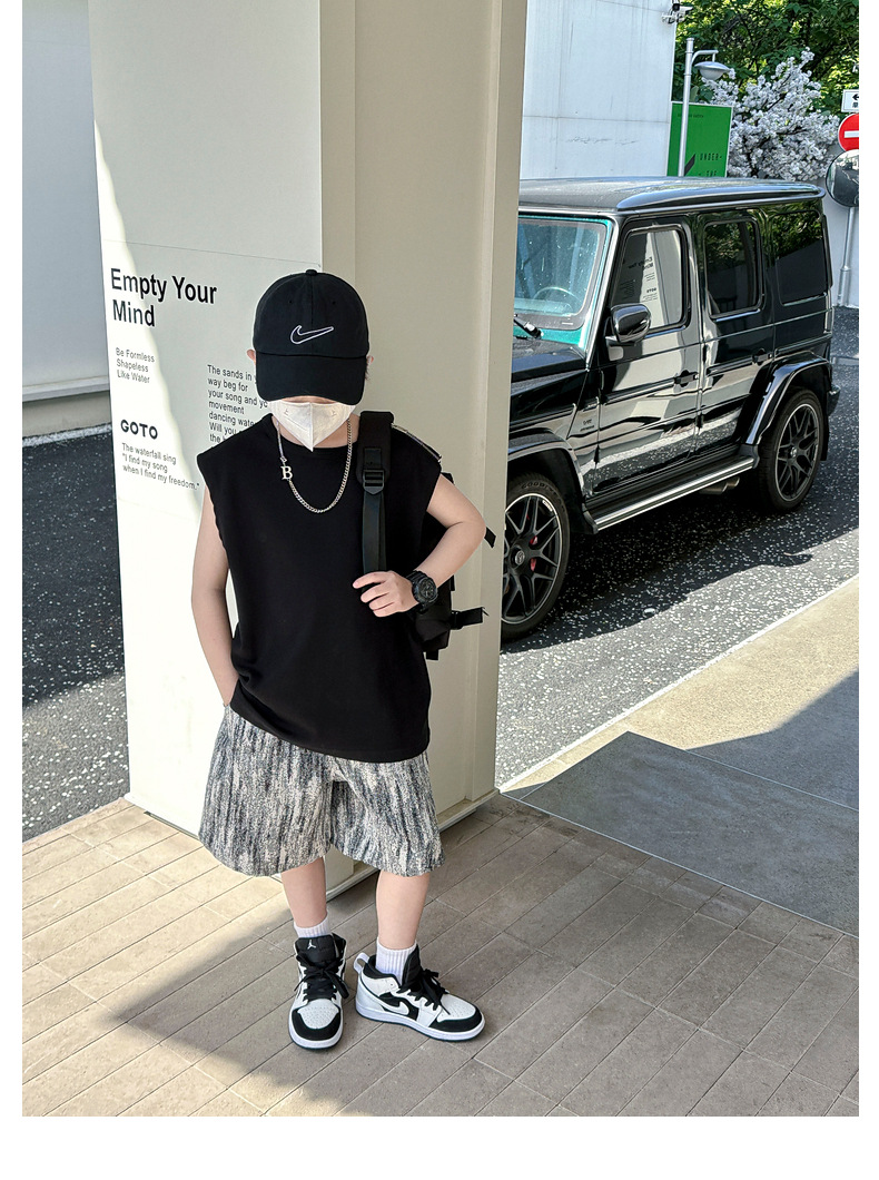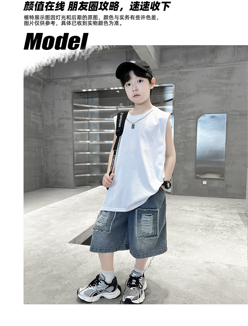 여름용 큰 남자아이 지퍼 조끼 아동복 남자아이 단색 민소매 개성있는 트렌디하고 멋스러운 다용도 중대형 아동 여름용스토어 가기