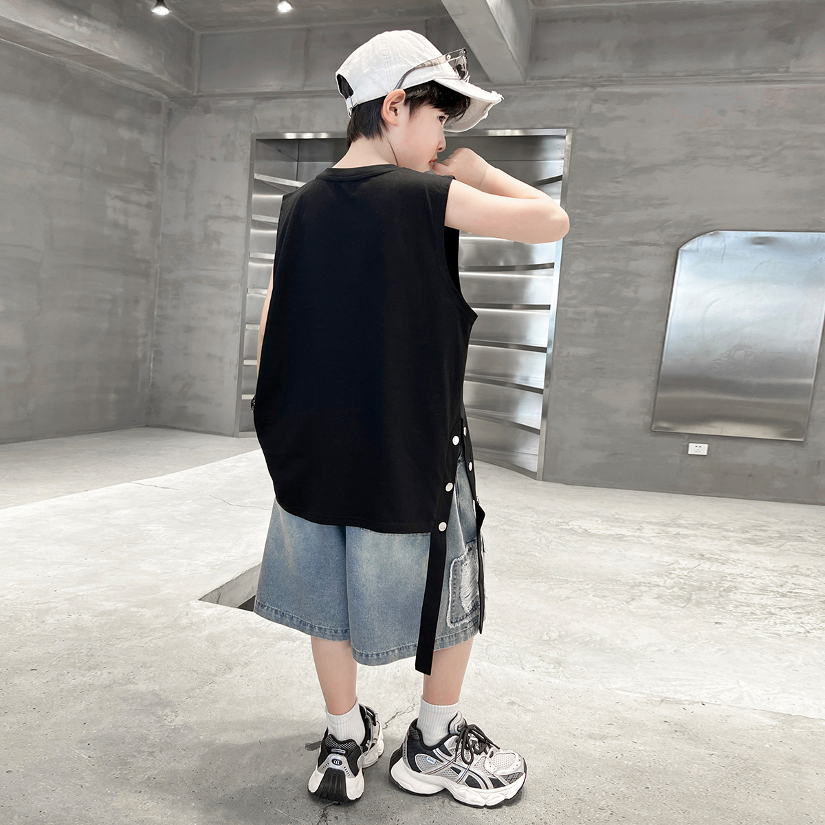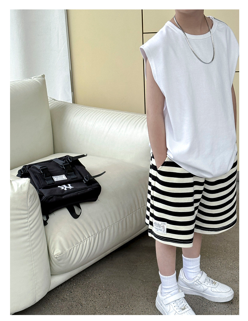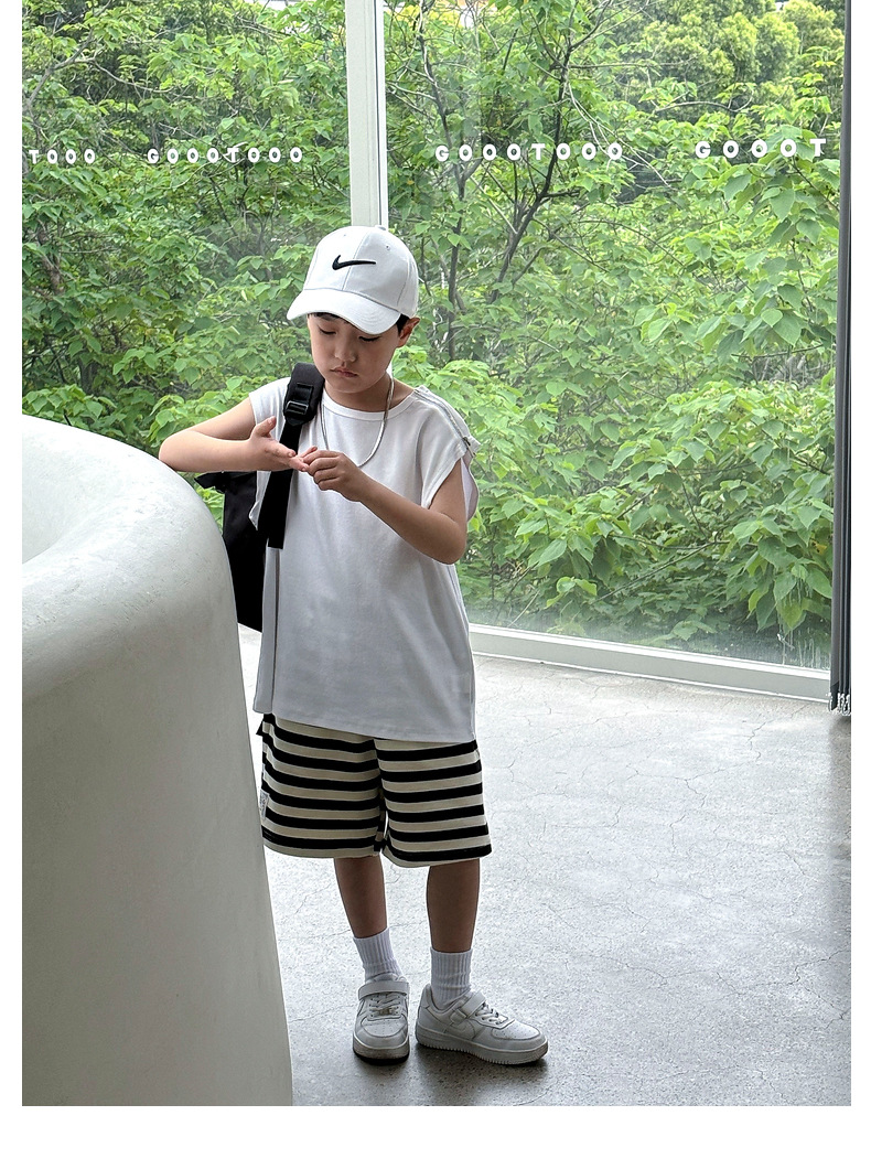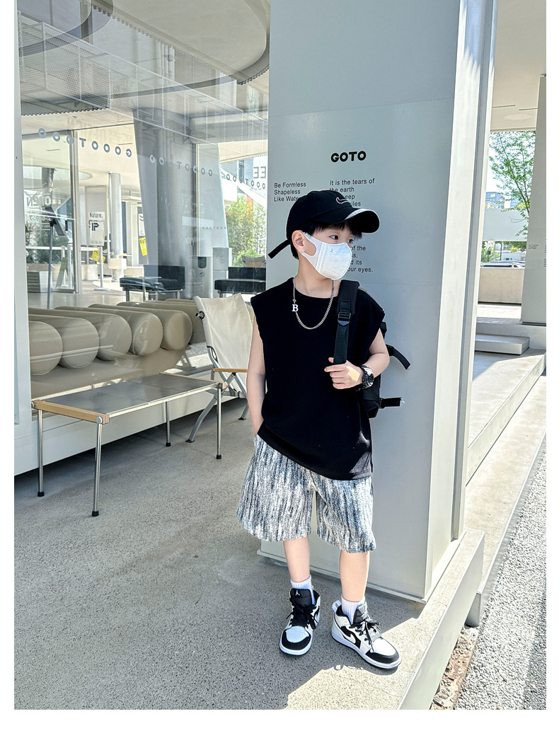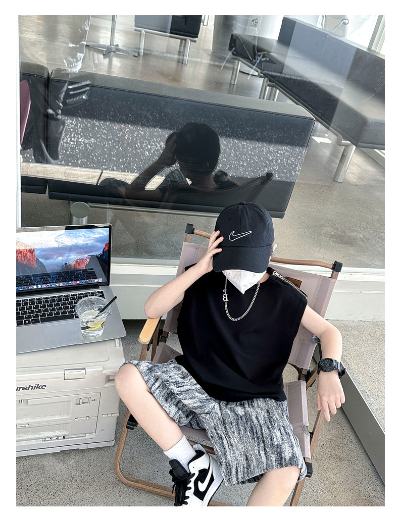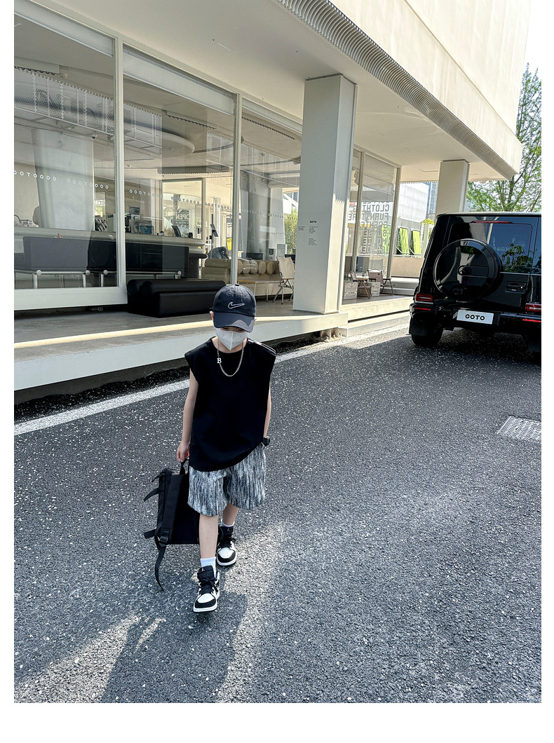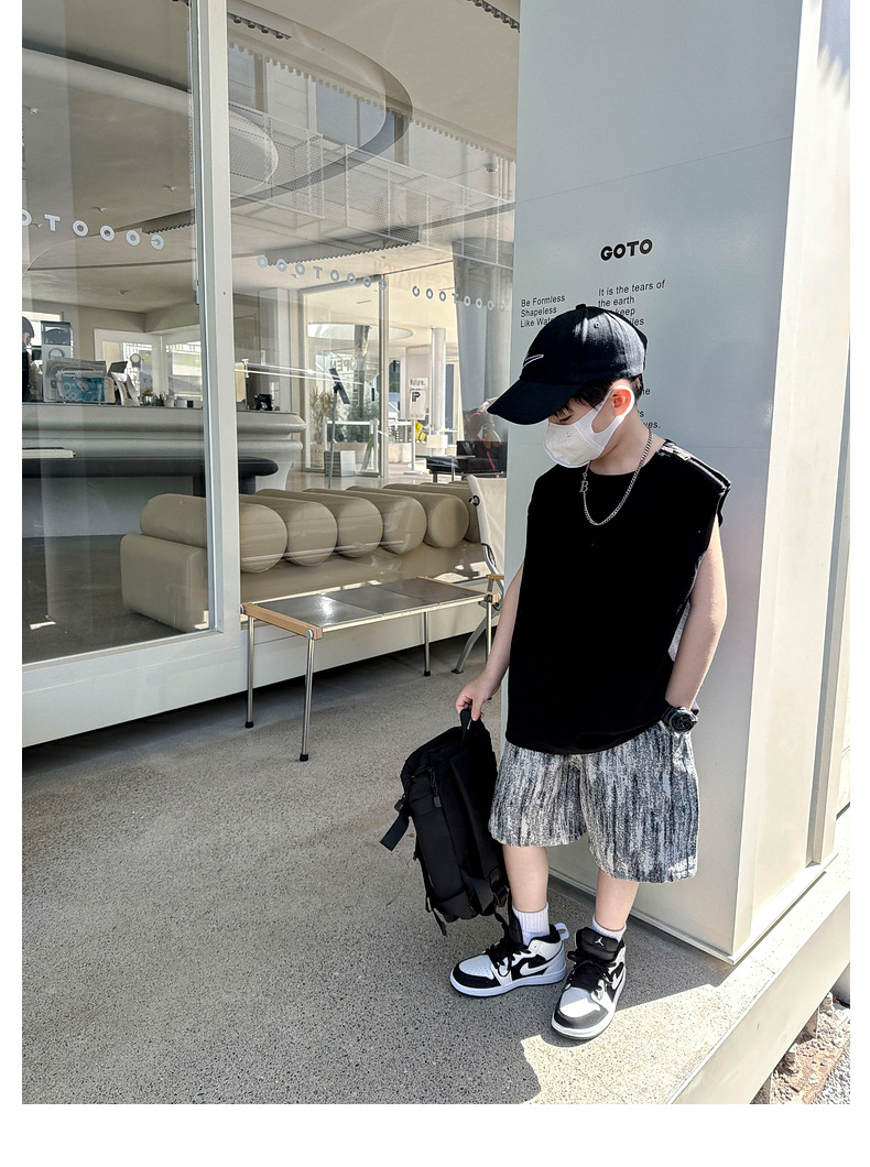 여름용 큰 남자아이 지퍼 조끼 아동복 남자아이 단색 민소매 개성있는 트렌디하고 멋스러운 다용도 중대형 아동 여름용스토어 가기