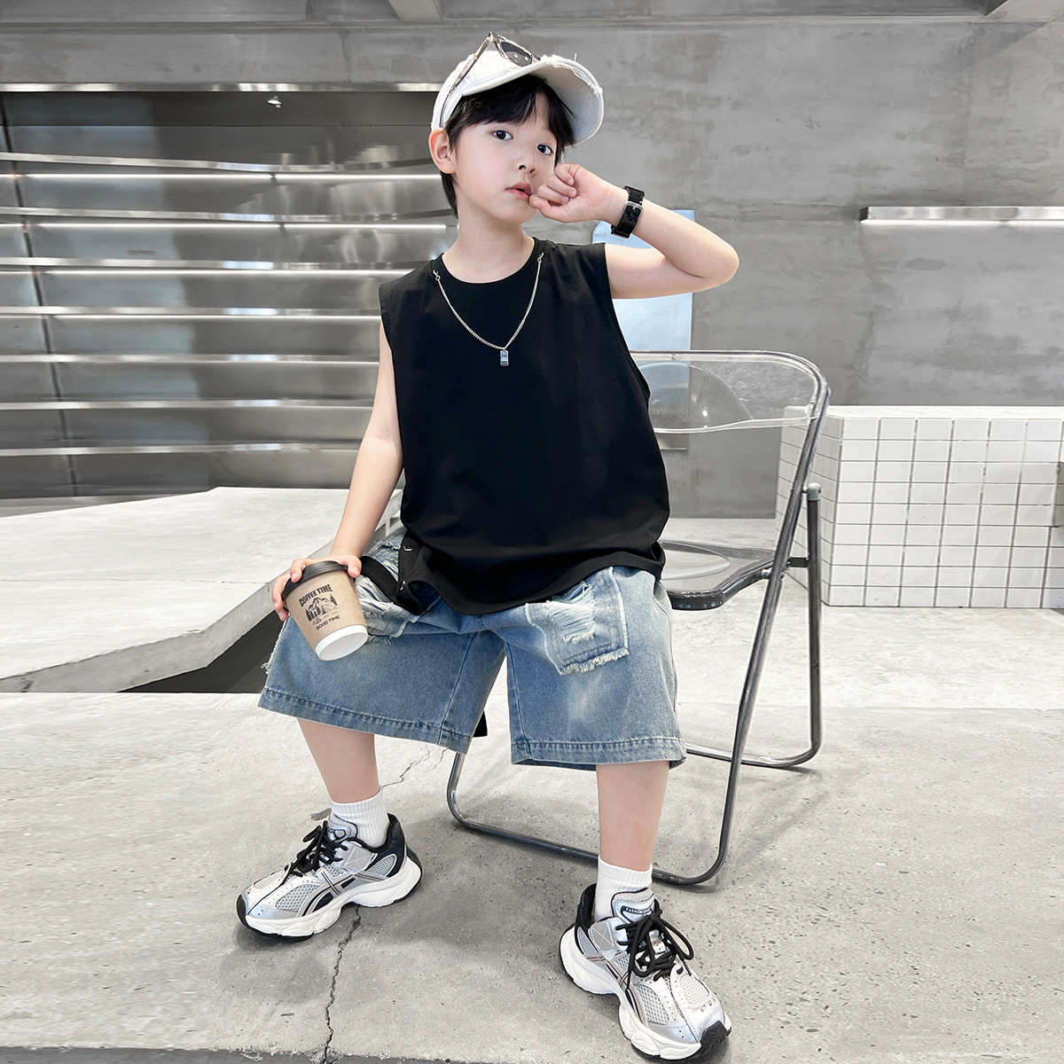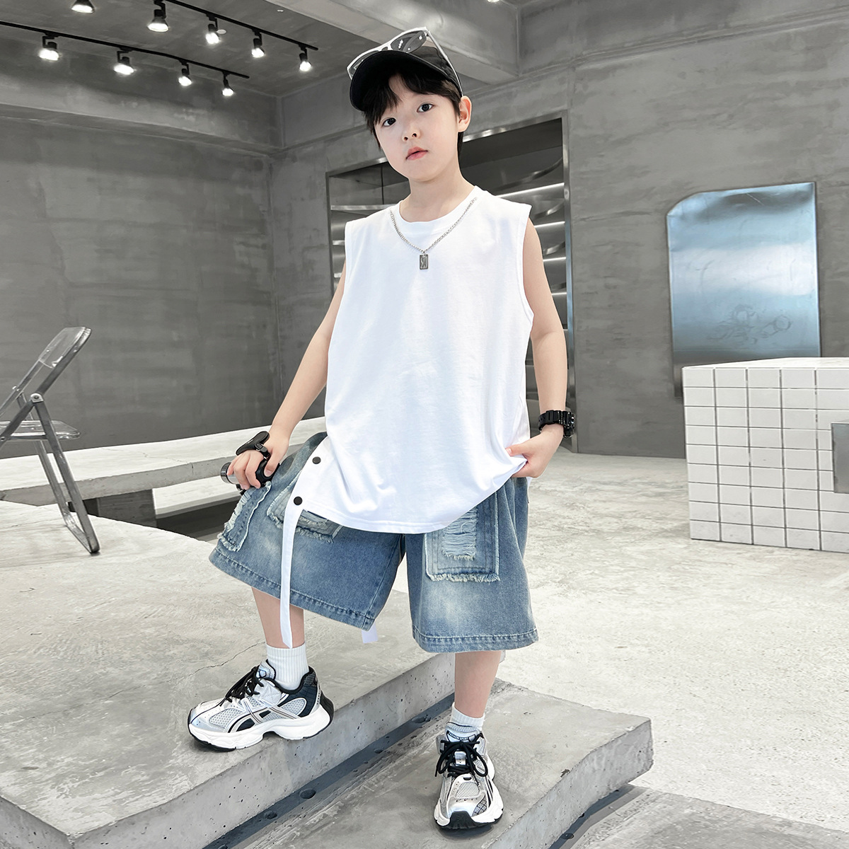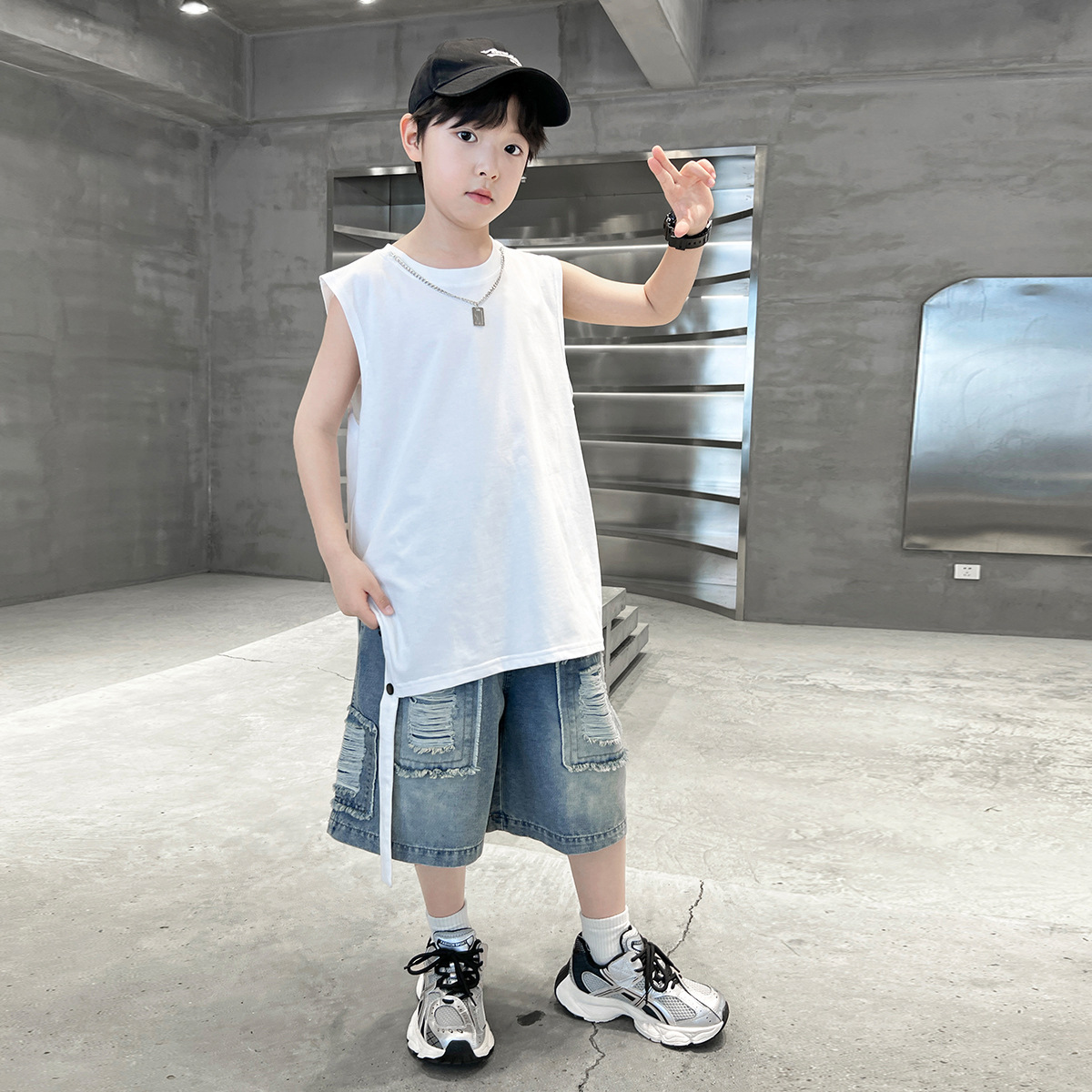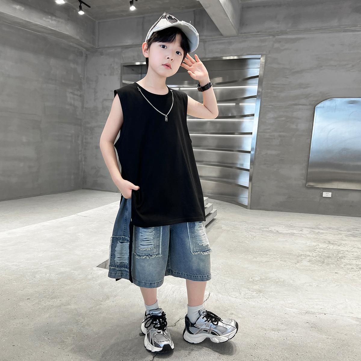 여름용 큰 남자아이 지퍼 조끼 아동복 남자아이 단색 민소매 개성있는 트렌디하고 멋스러운 다용도 중대형 아동 여름용스토어 가기