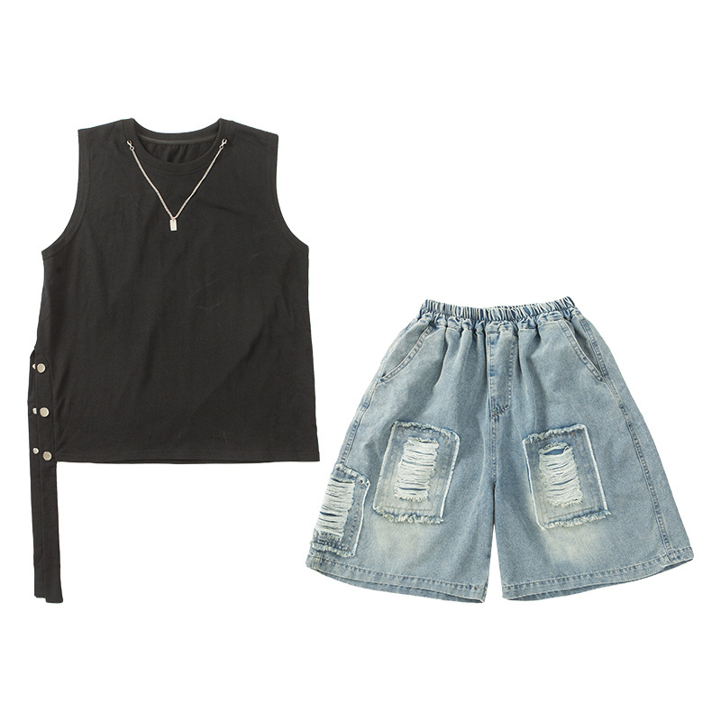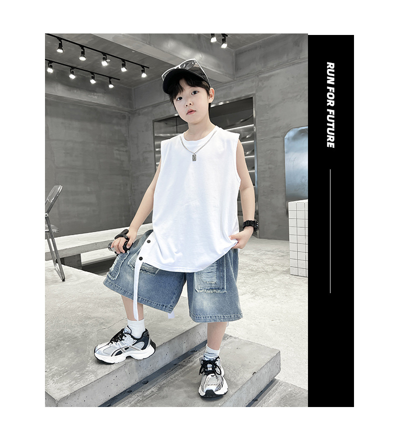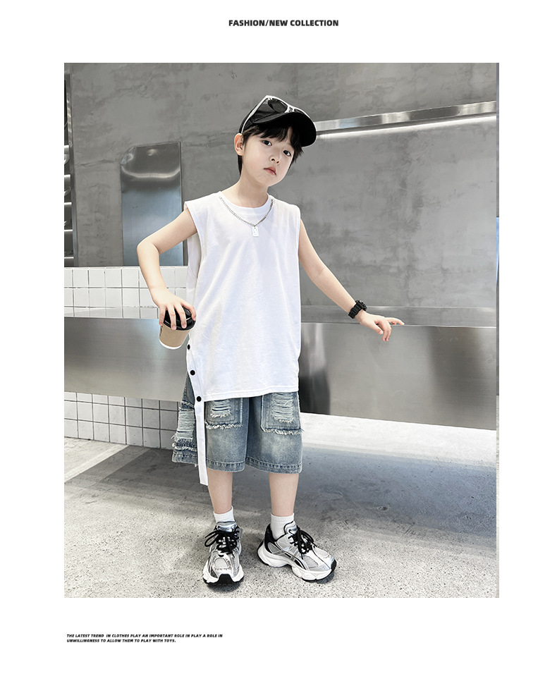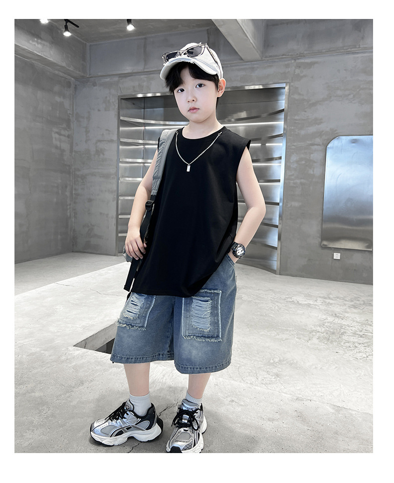 여름용 큰 남자아이 지퍼 조끼 아동복 남자아이 단색 민소매 개성있는 트렌디하고 멋스러운 다용도 중대형 아동 여름용