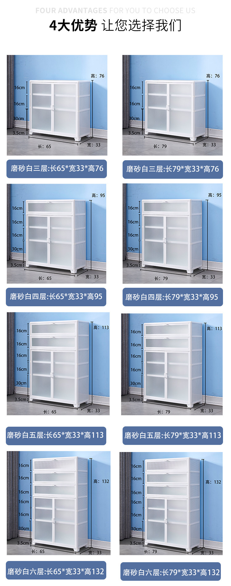 • 서리로 덥은 흰색 5 층 4 문: 길이 65 너비 33 높이 113 도르래 두께