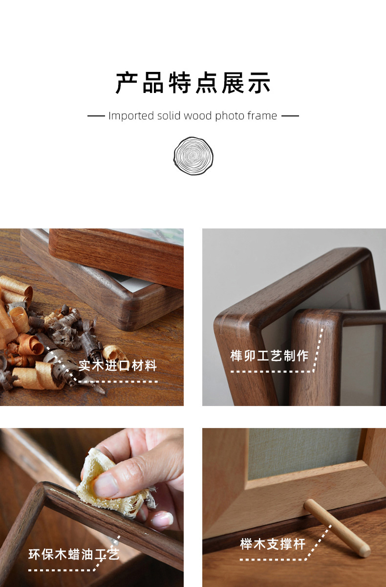 단단한 나무 사진 프레임 검은 호두 수제 체리 나무 둥근 모서리 6inch 사진 프레임 새로운 중국 스타일 로그 사진 프레임 하이 엔드