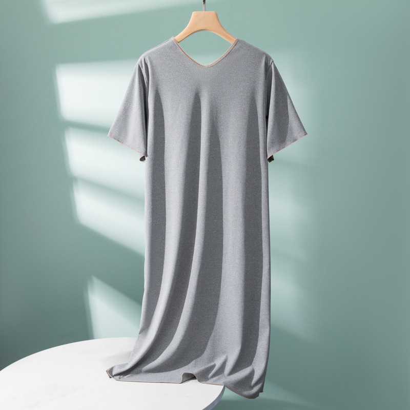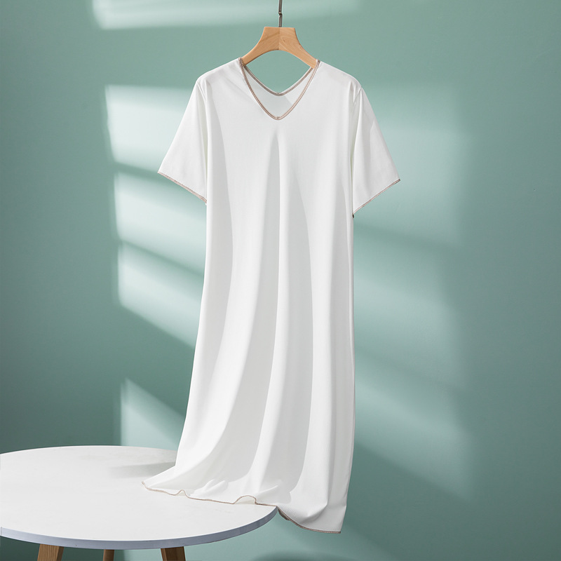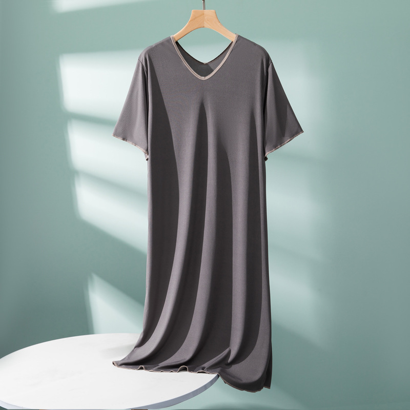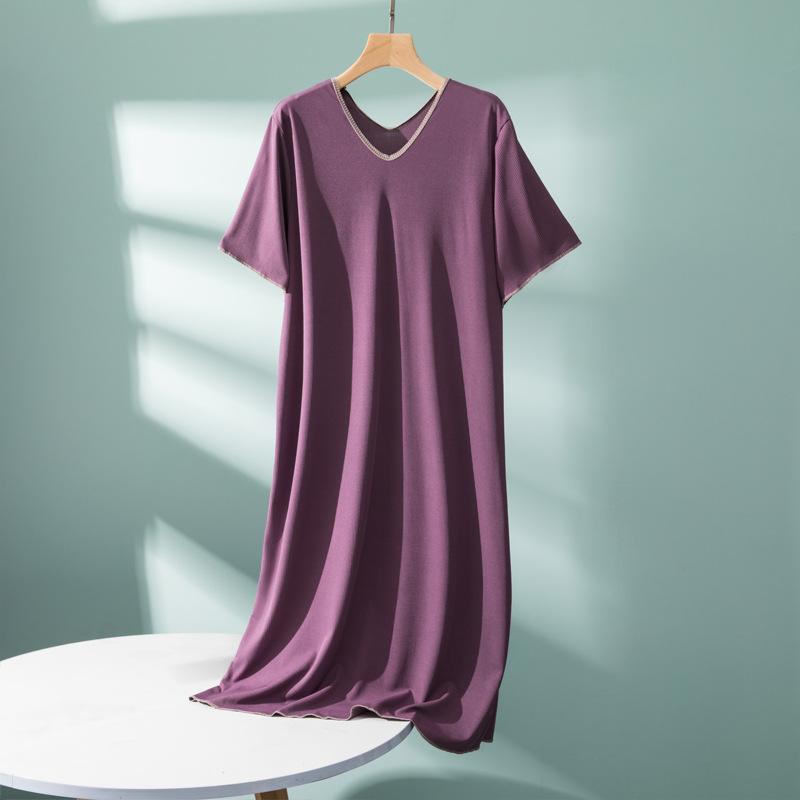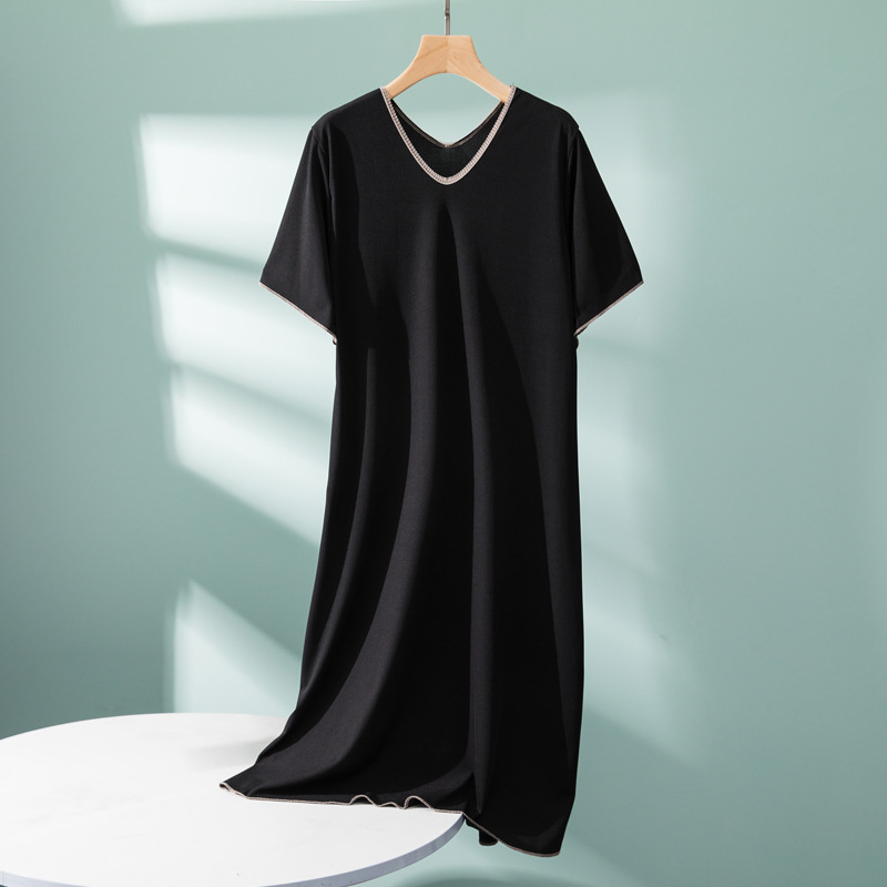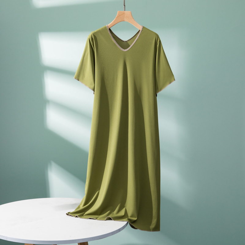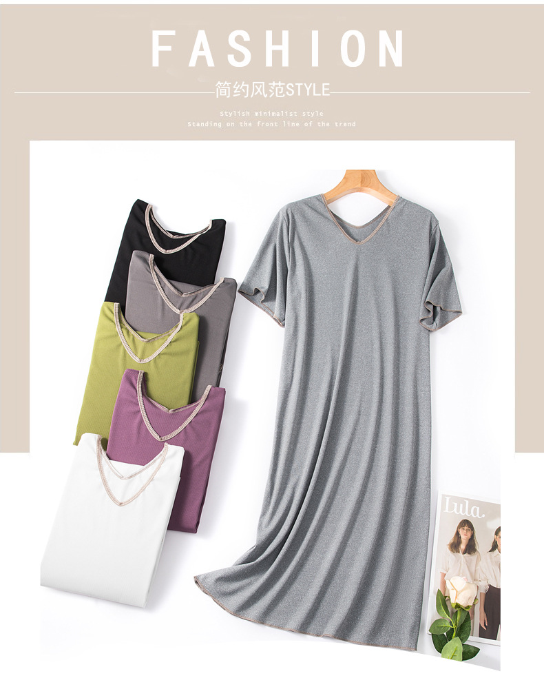 잠옷 여자의 반팔 원피스 여름 얇은 캐주얼 잠옷 치마 느슨한 플러스 사이즈 V-넥 야외 착용 가정 옷스토어 가기