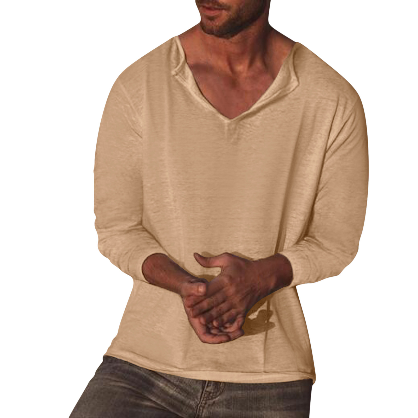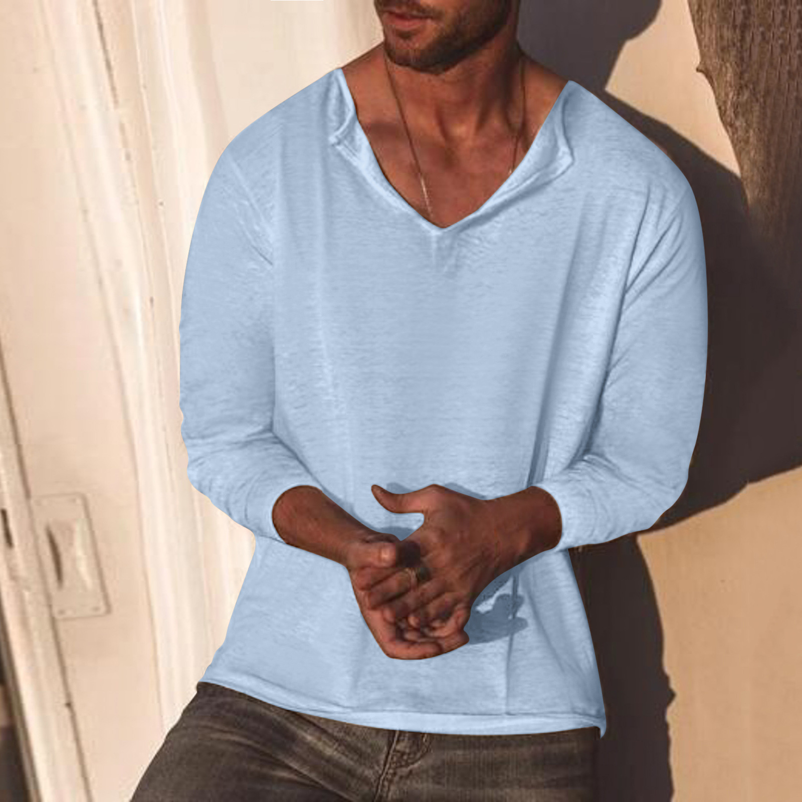 2023 크로스 보더 새로운 남성 캐주얼 솔리드 컬러 V-넥 긴팔 티셔츠