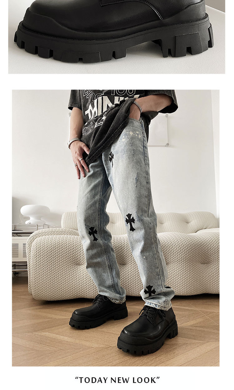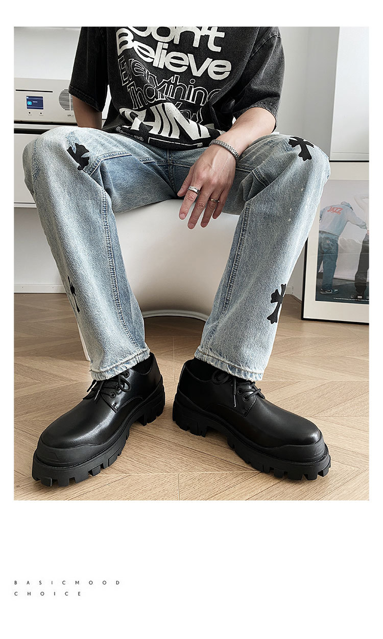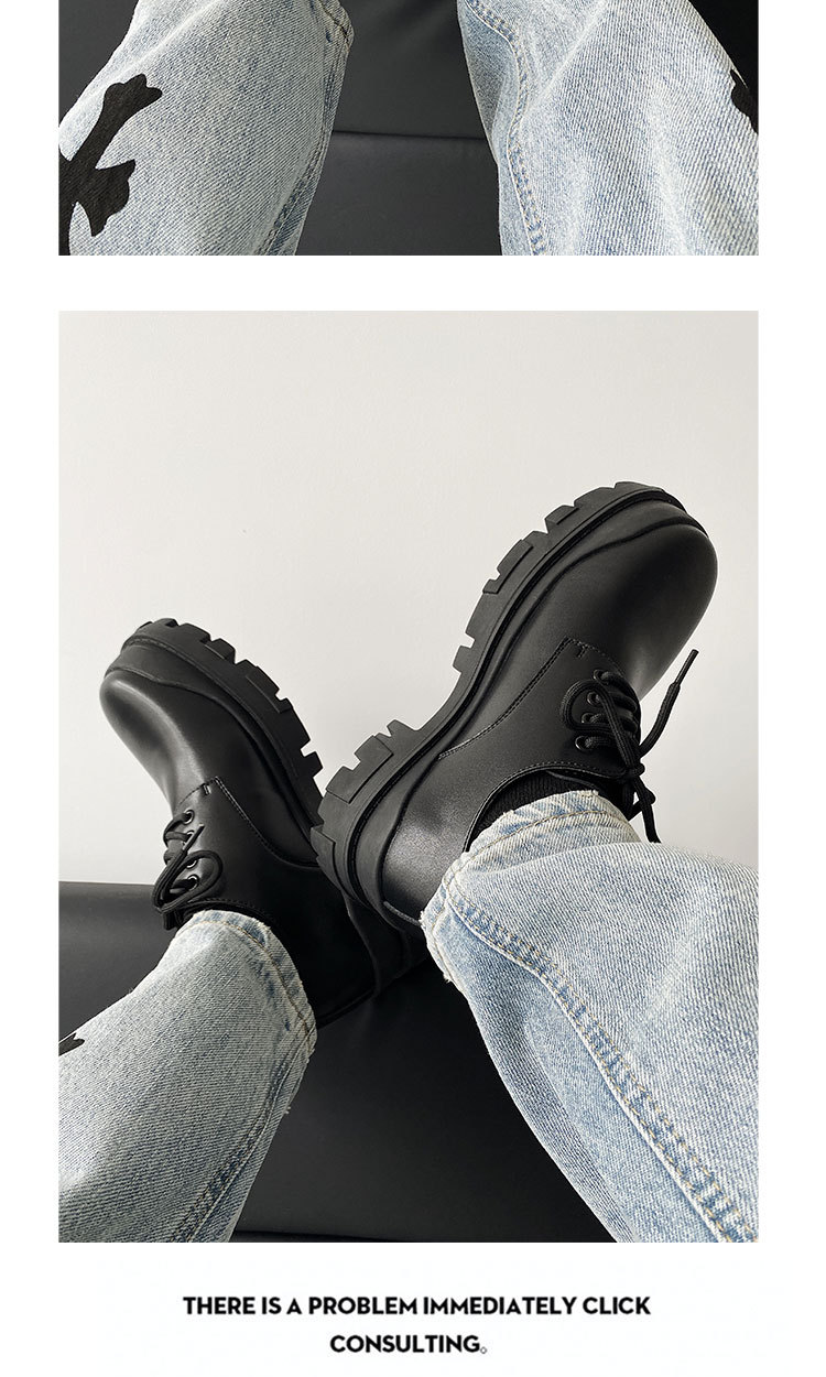 2023 남성 캐주얼 플랫폼 모든 매치 블랙 가죽 신발 작업복 신발 증가 더비 신발 연인 신발스토어 가기