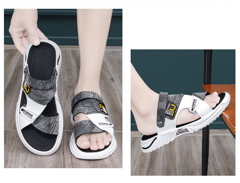 2025년 여름 신상 남성용 비치 슈즈, 패셔너블한 한국 스타일, 개성 넘치는 외출용 투웨이 샌들 슬리퍼, 남성 샌들스토어 가기