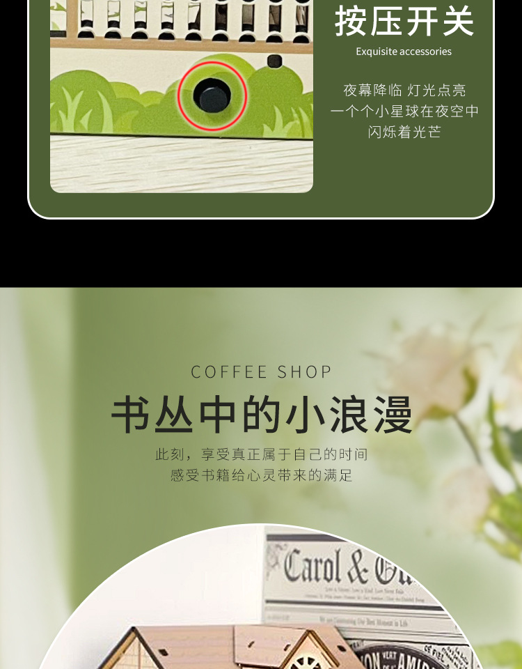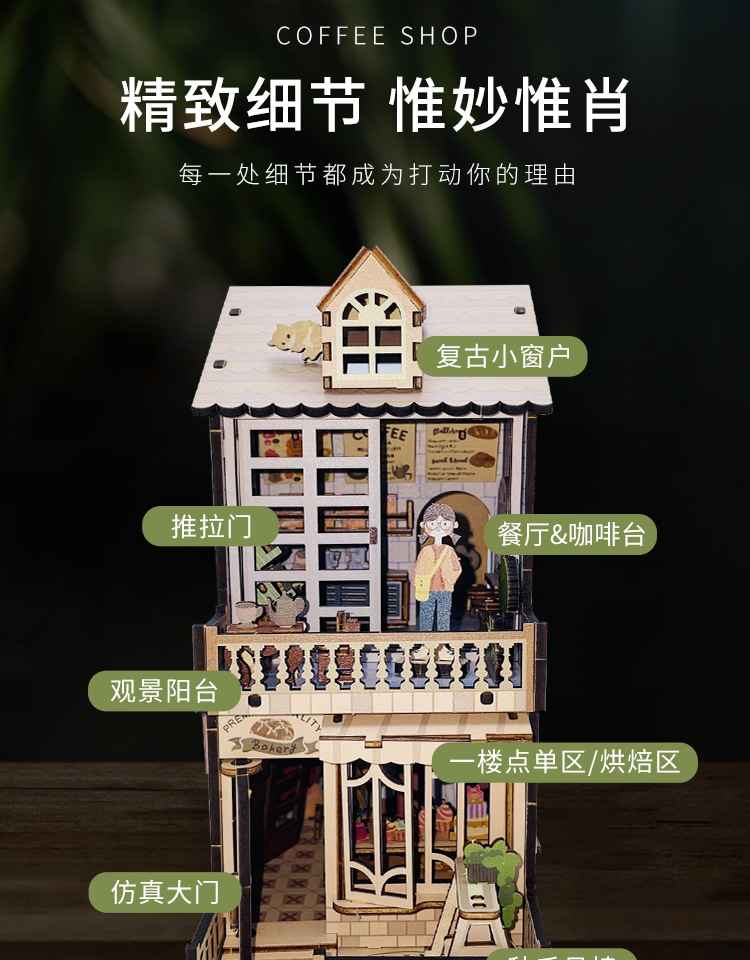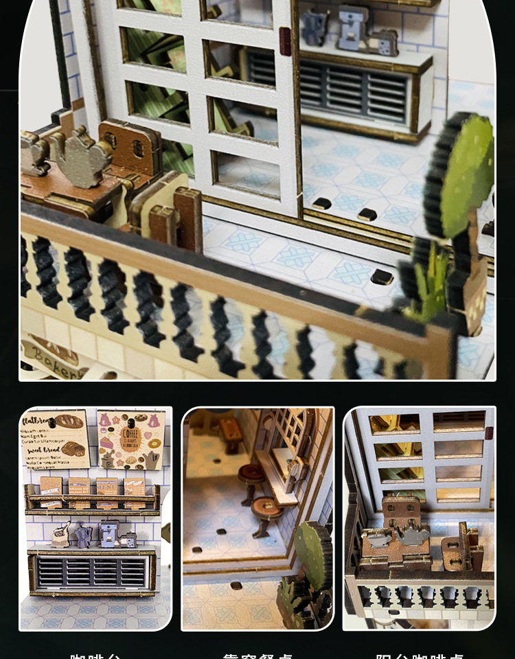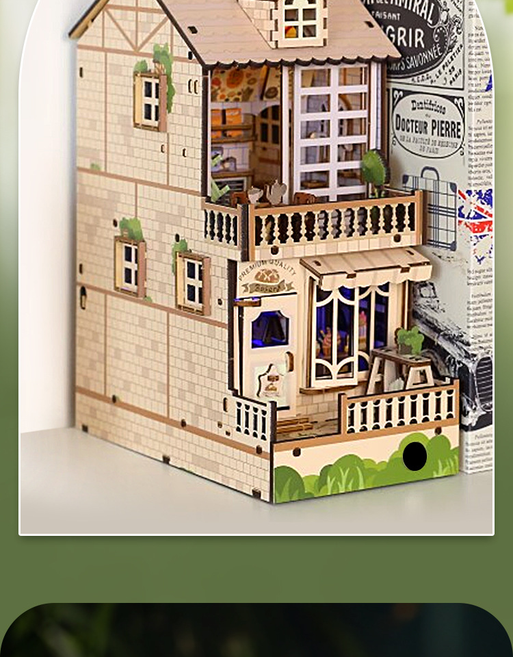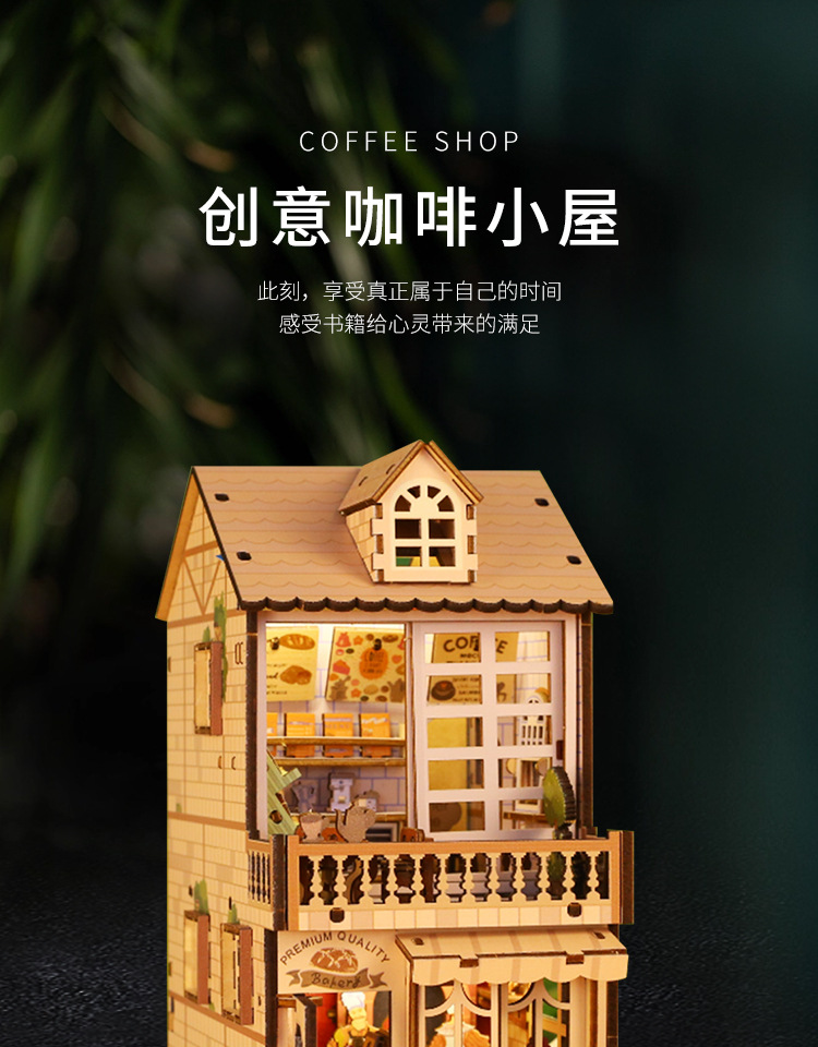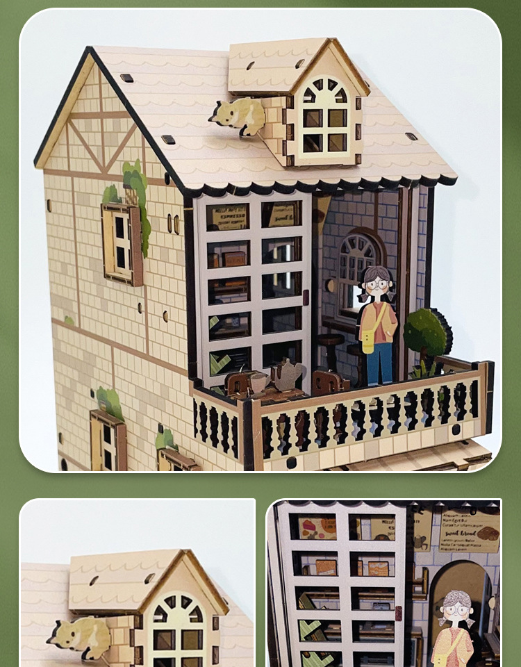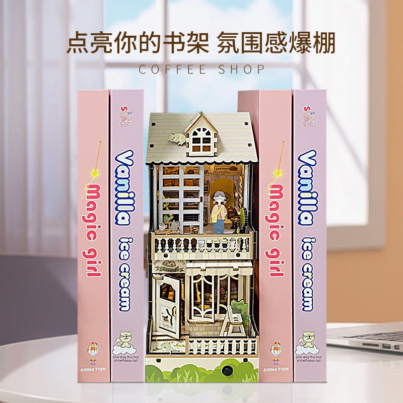 나무 입체 퍼즐 조립 장난감 수제 책 스탠드 데스크탑 장식품 DIY 오두막 마이크로 장면 창조적 인 선물스토어 가기