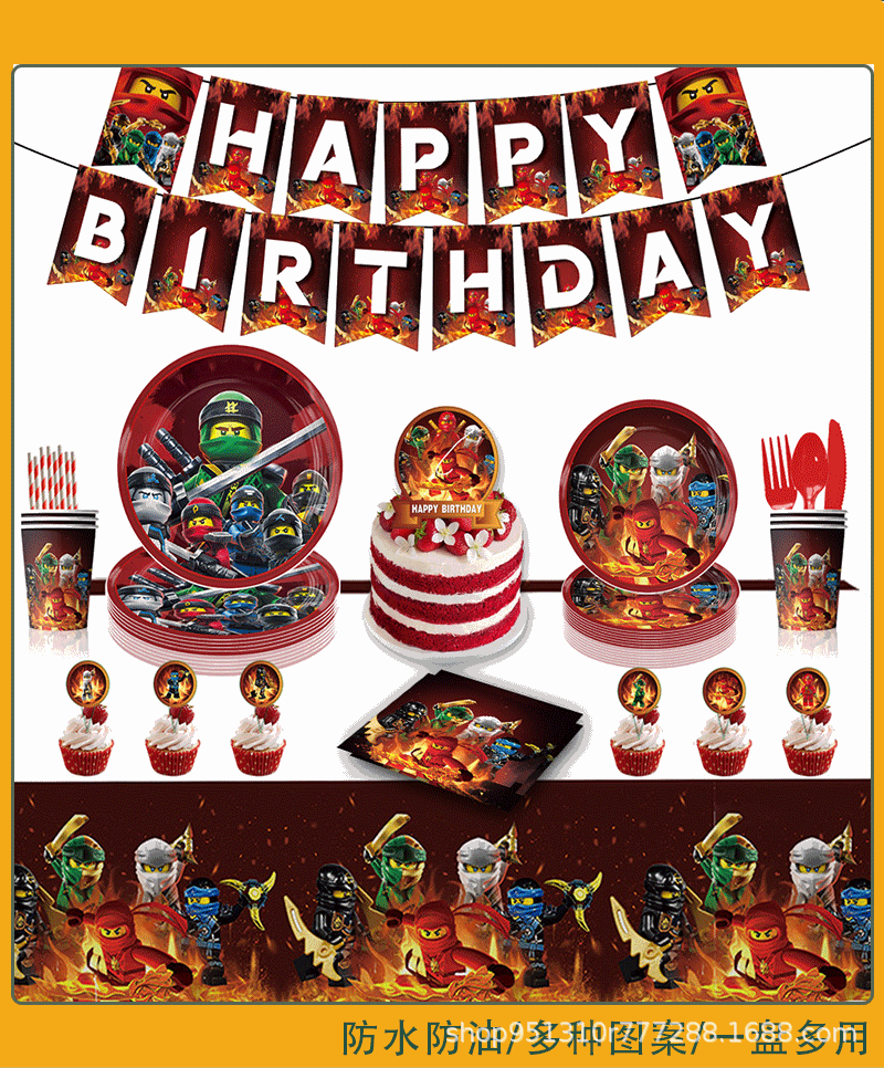 레고 닌자 테마 만화 풍선 소년 어린이 년 생일 파티 배경 장식 장면 배열