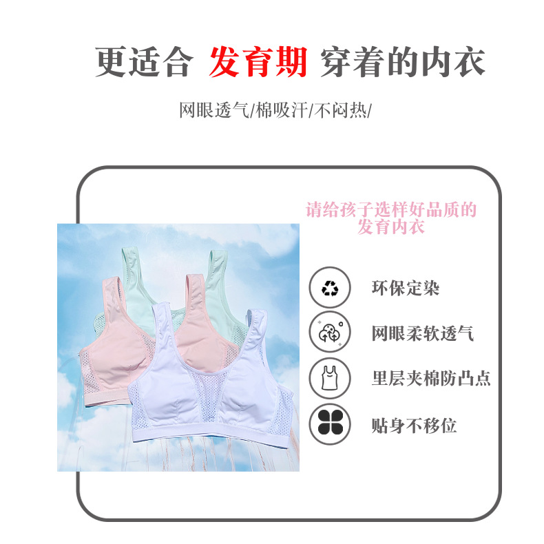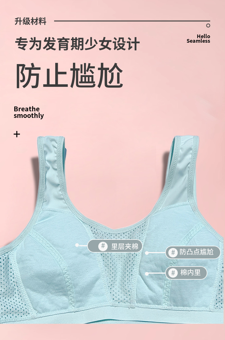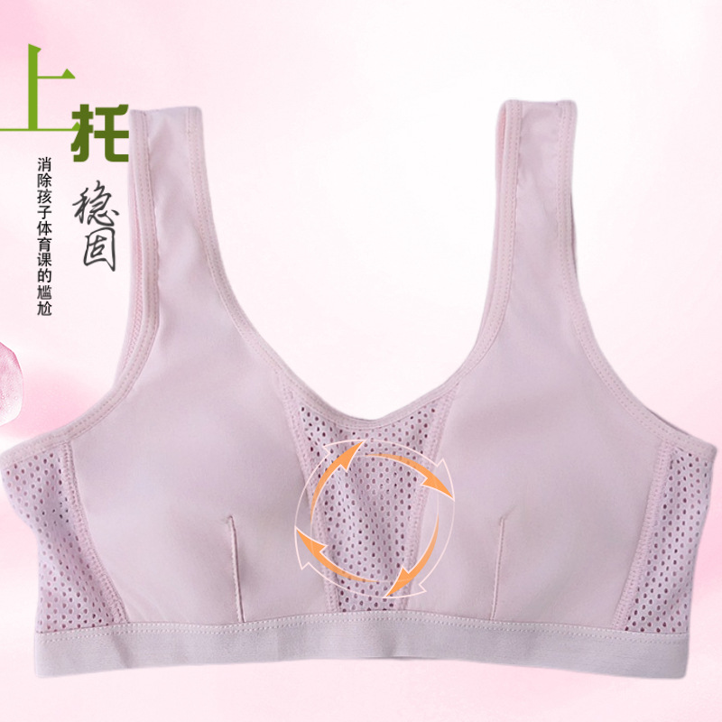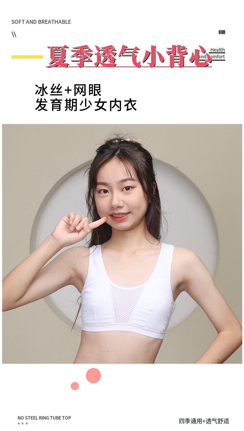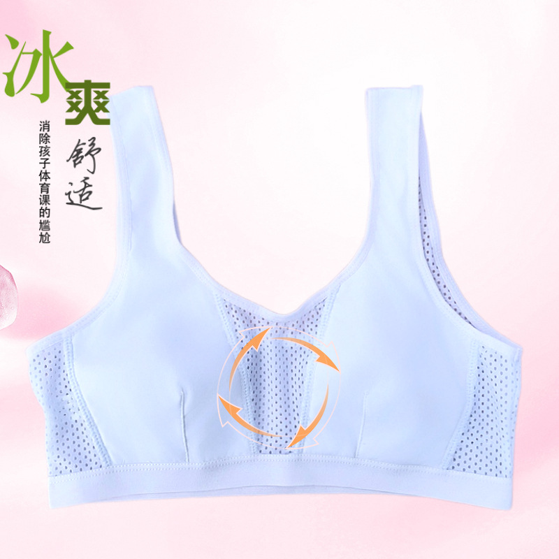발달기 브라 학생 속옷 소녀용 중학생 아이스 실크 노와이어 메쉬 확대형 어린이 여름용