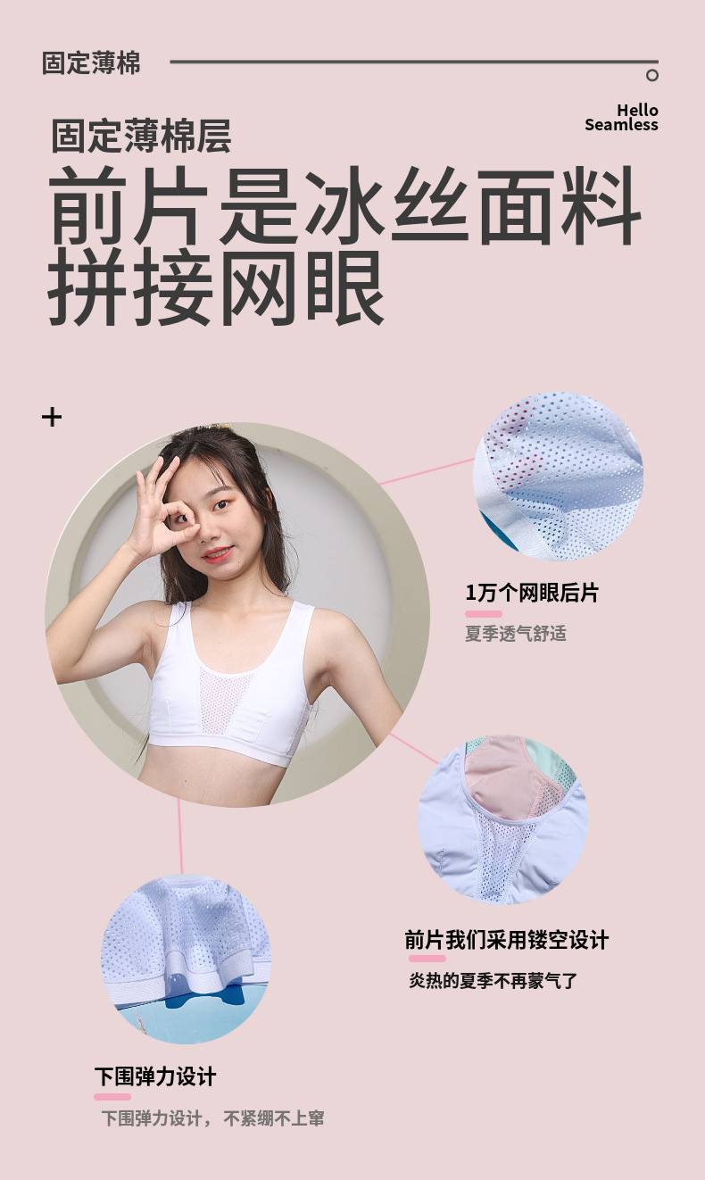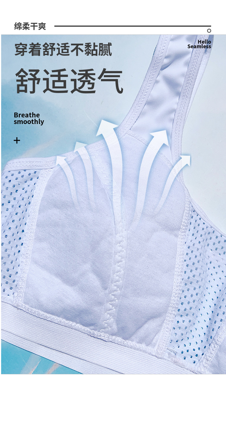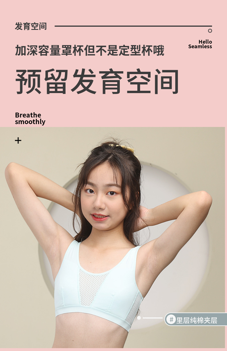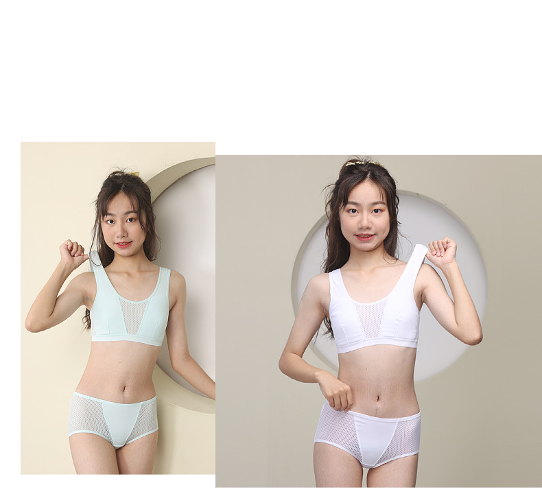 발달기 브라 학생 속옷 소녀용 중학생 아이스 실크 노와이어 메쉬 확대형 어린이 여름용