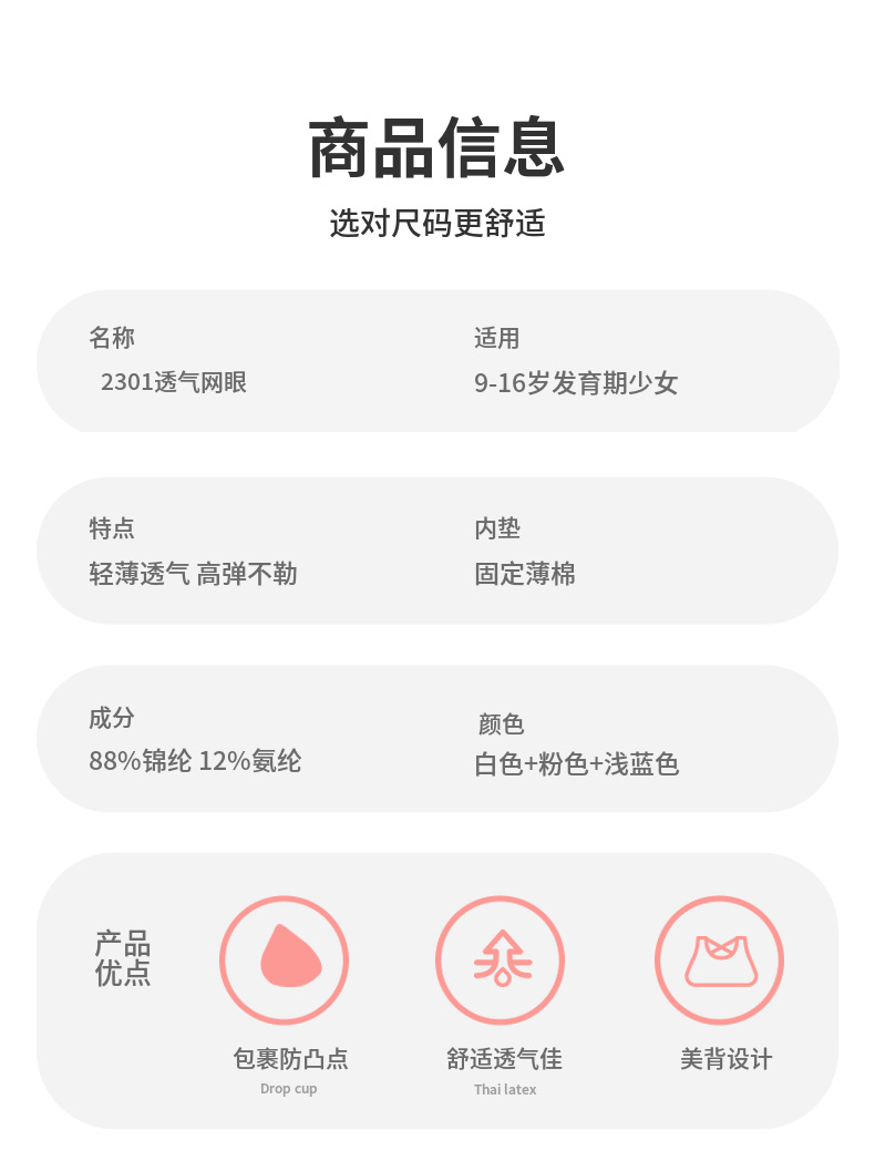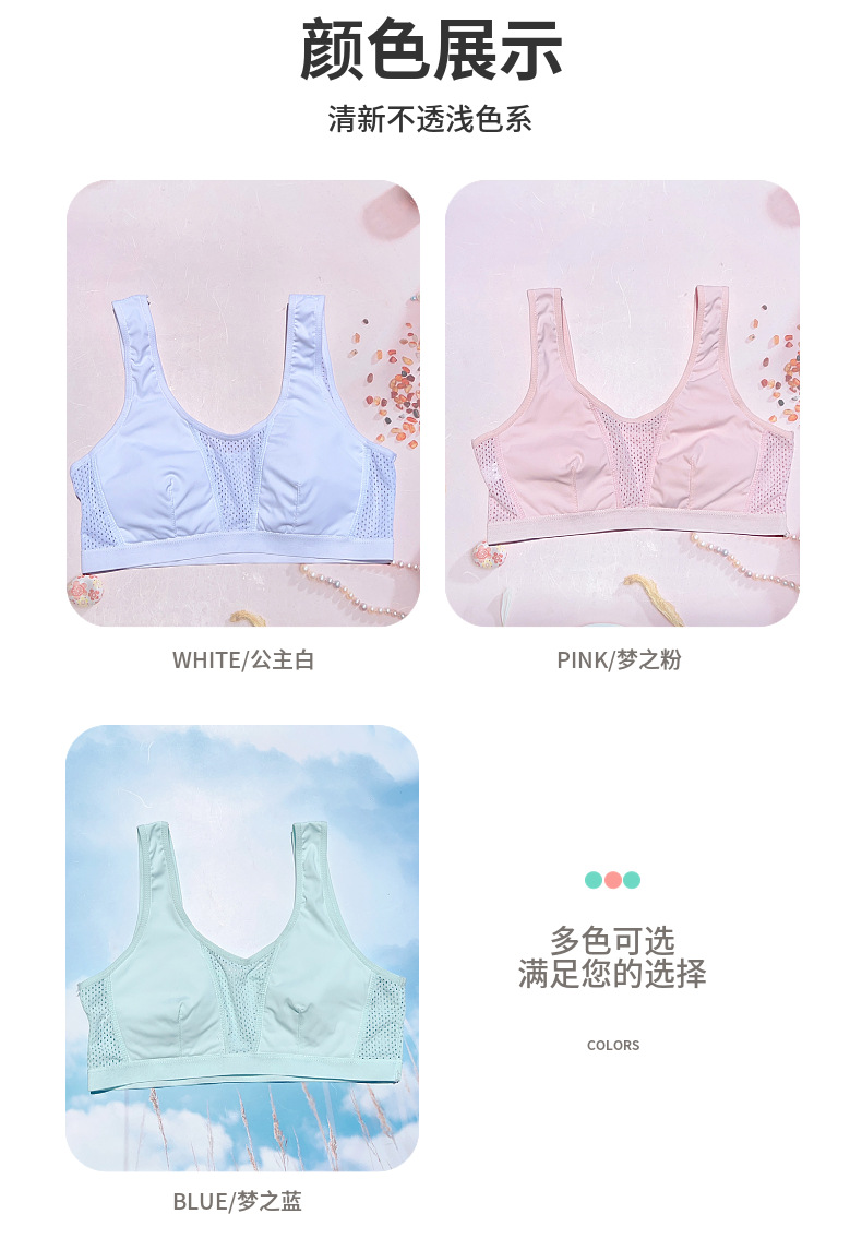발달기 브라 학생 속옷 소녀용 중학생 아이스 실크 노와이어 메쉬 확대형 어린이 여름용스토어 가기
