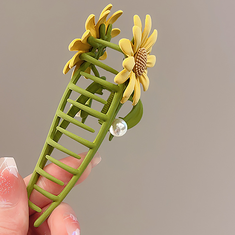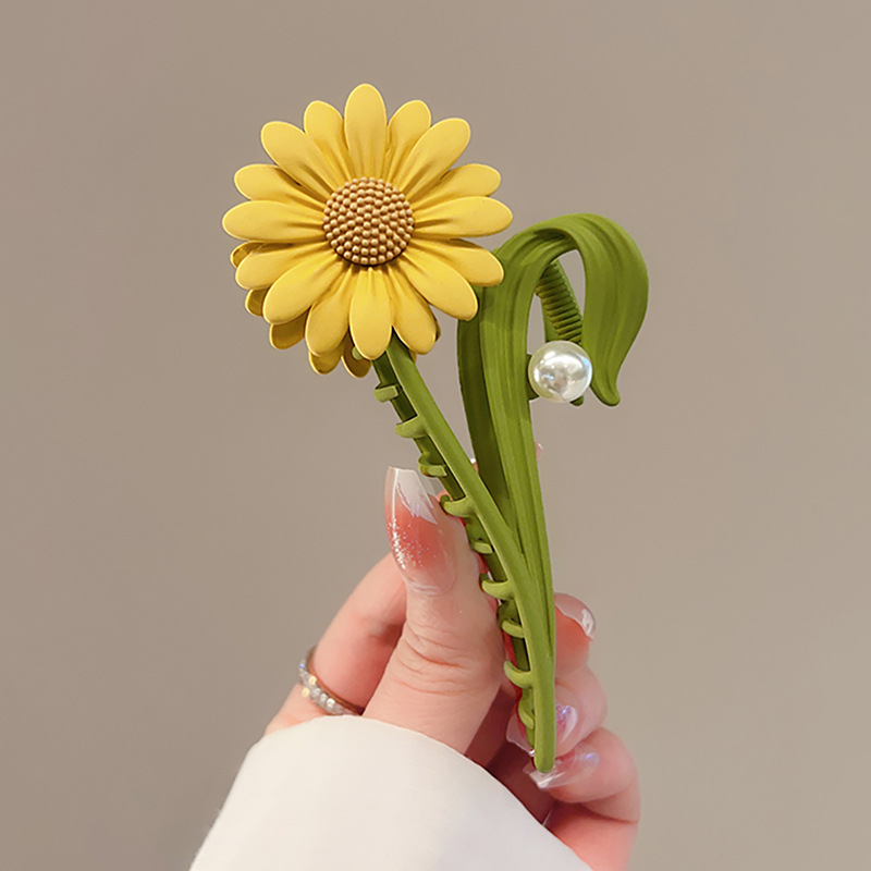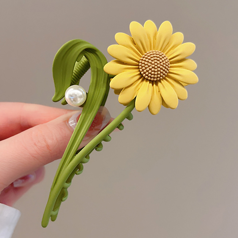 한국 여름 우아한 머리핀 해바라기 클립 여자의 머리 뒤로 우아한 하이 엔드 감각 금속 상어 클립 모자스토어 가기