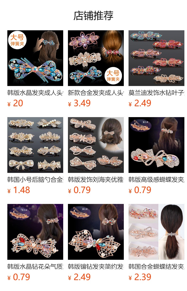 한국식 크리스탈 머리핀 성인 대형 스프링 클립 고급 포니테일 클립 여성용 헤드 라인 석 클립 헤어 액세서리스토어 가기