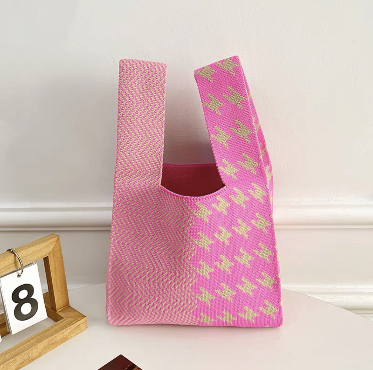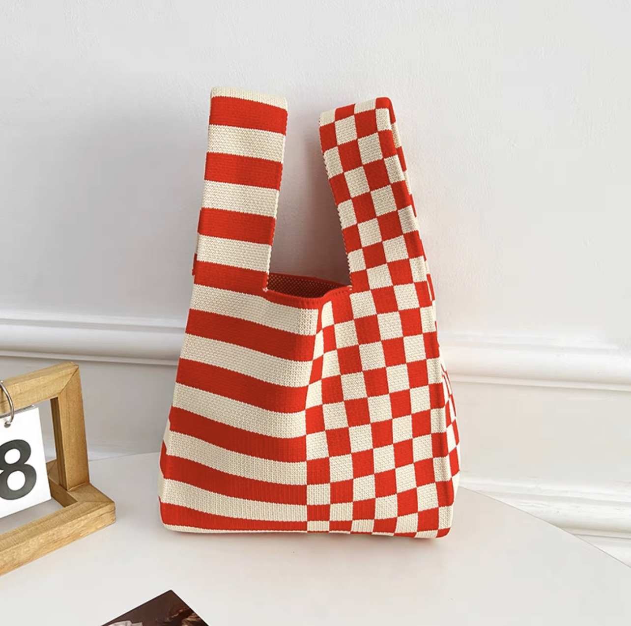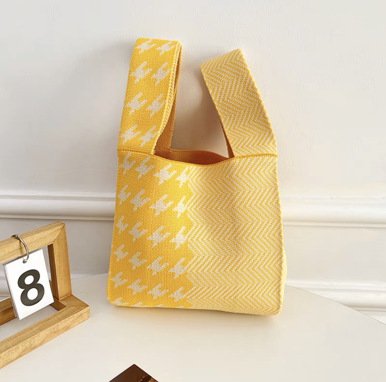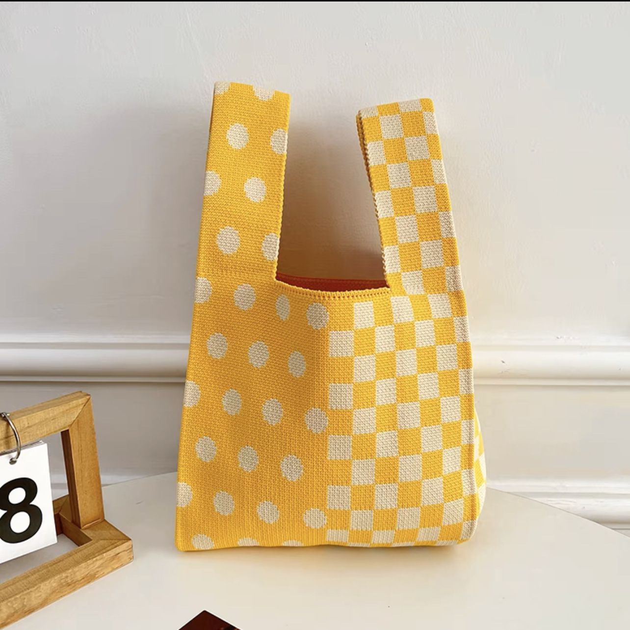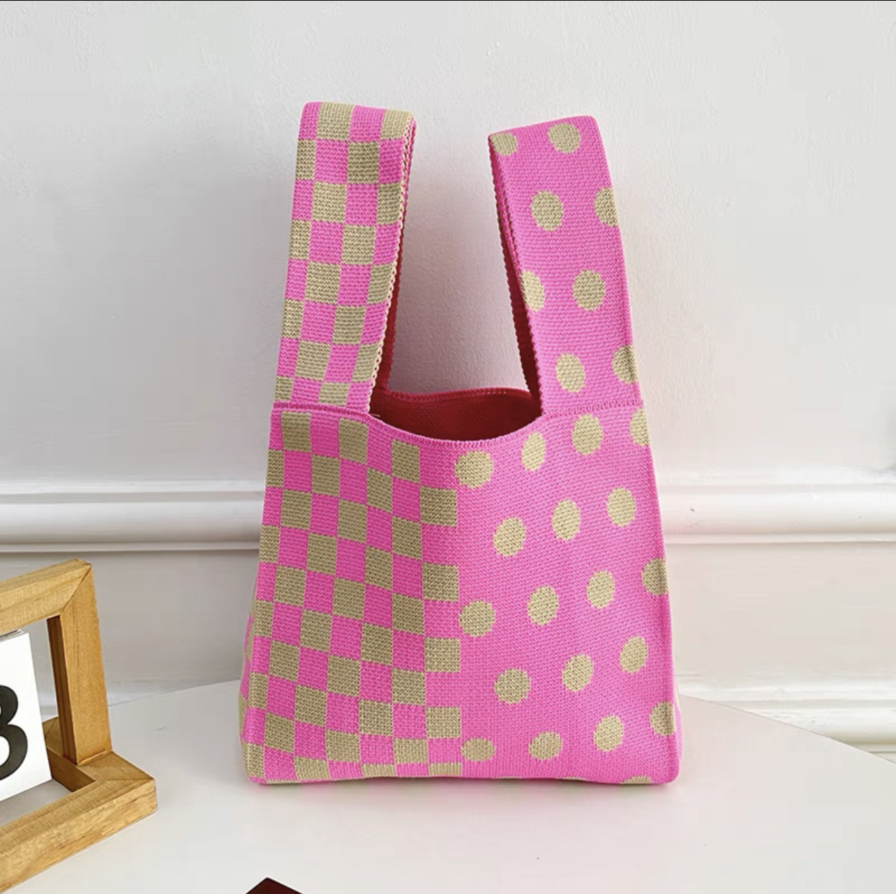 일본과 한국 스타일 니트 손목 가방 유행 캔디 물방울 무늬 용기 가방 여성과 편리한 토트 백