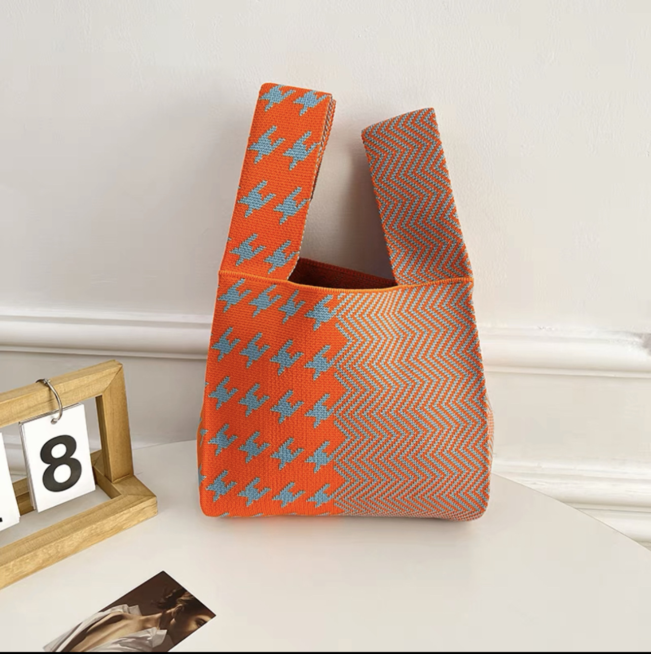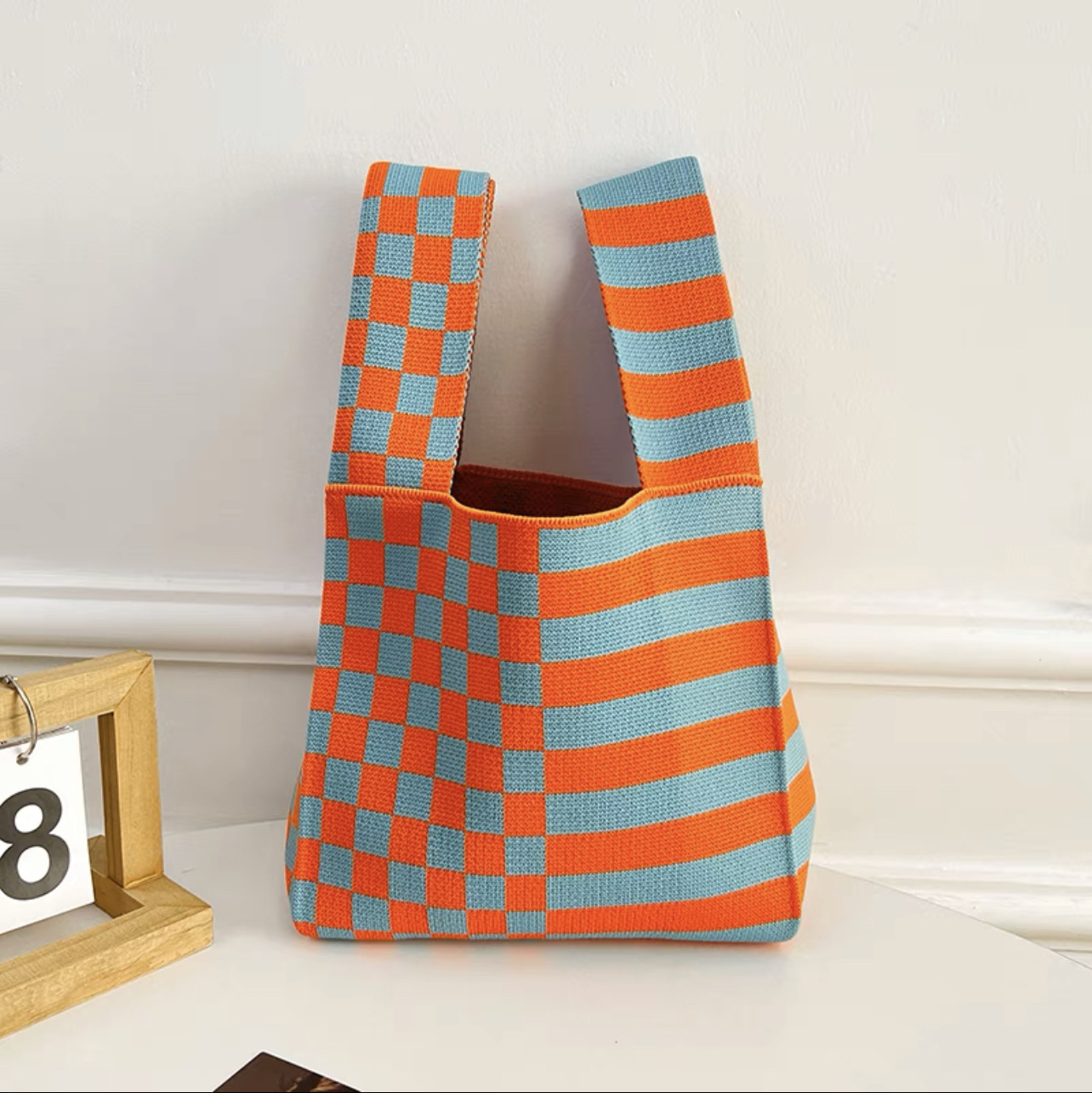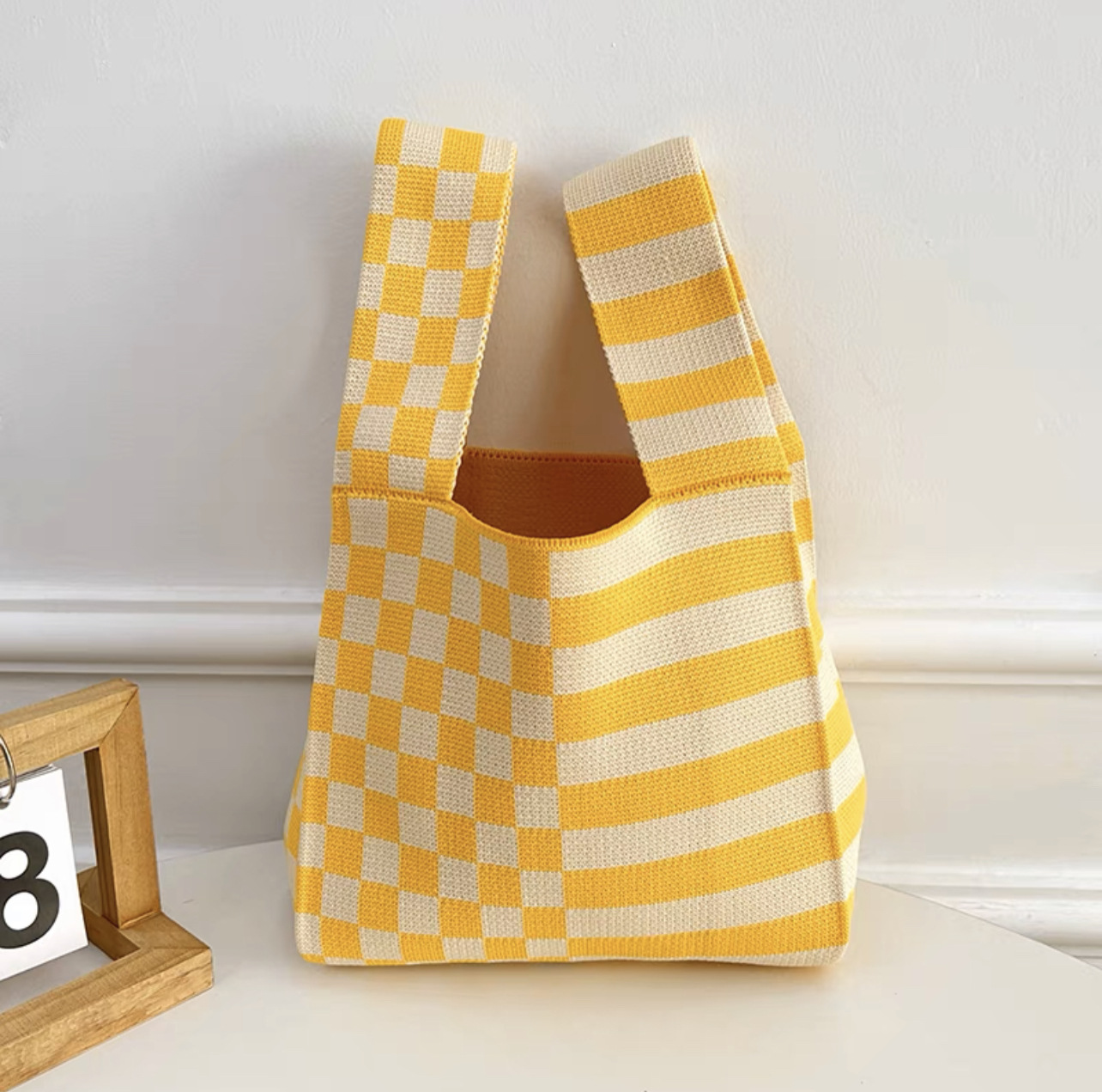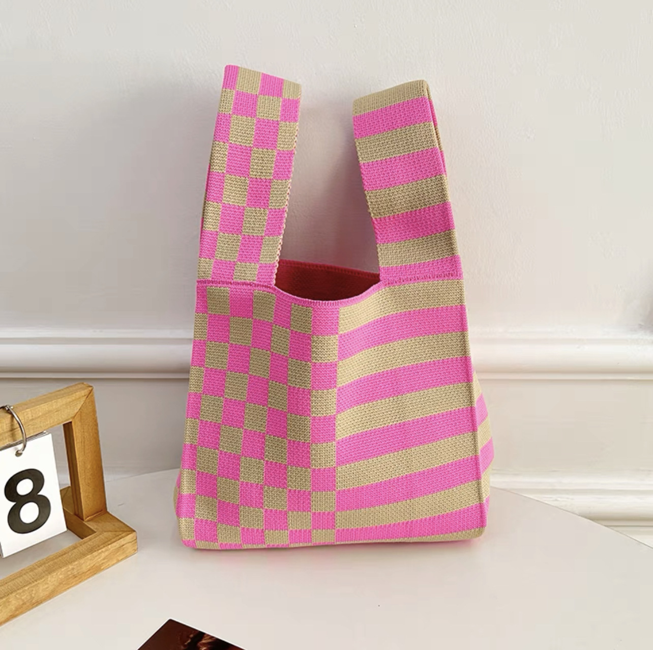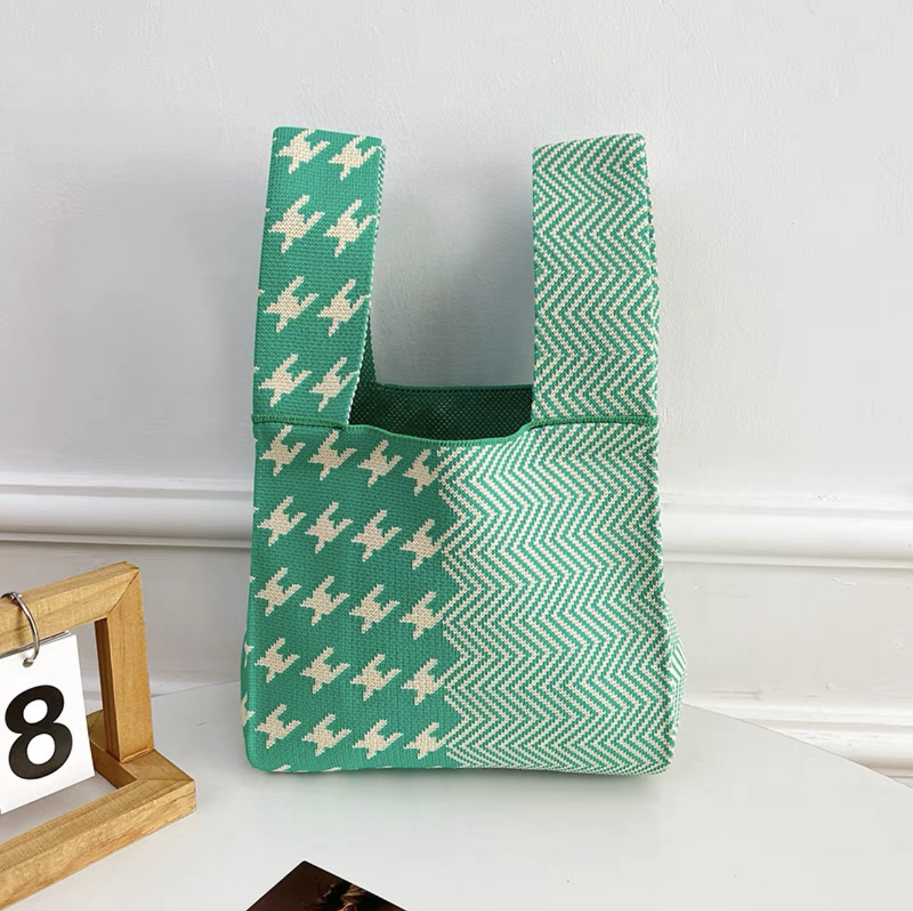 일본과 한국 스타일 니트 손목 가방 유행 캔디 물방울 무늬 용기 가방 여성과 편리한 토트 백