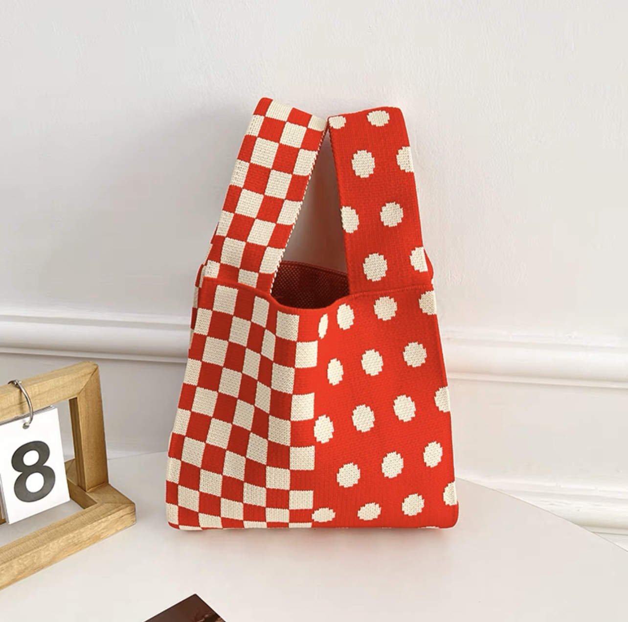 일본과 한국 스타일 니트 손목 가방 유행 캔디 물방울 무늬 용기 가방 여성과 편리한 토트 백스토어 가기