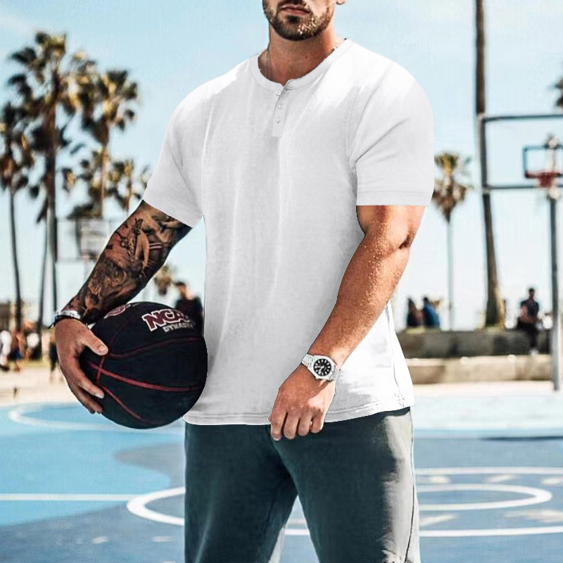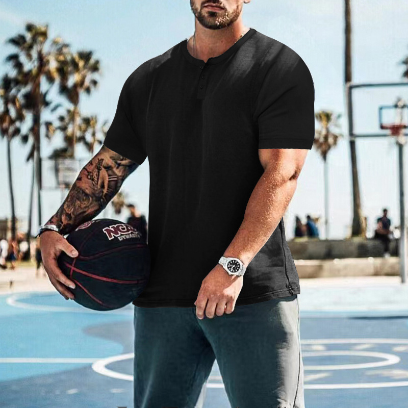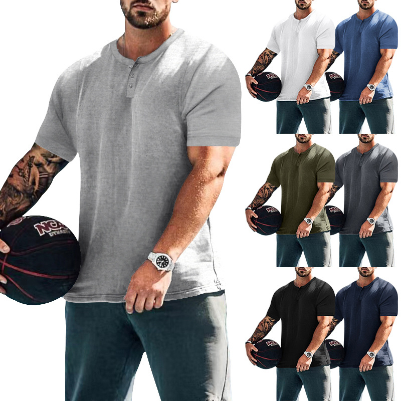 독립 역 크로스 보더 의류 남성용 t 헨리 크루넥 반팔 6XL 셔츠 헤비 티셔츠 남성용 슬림핏 솔리드 컬러 베이스 셔츠스토어 가기