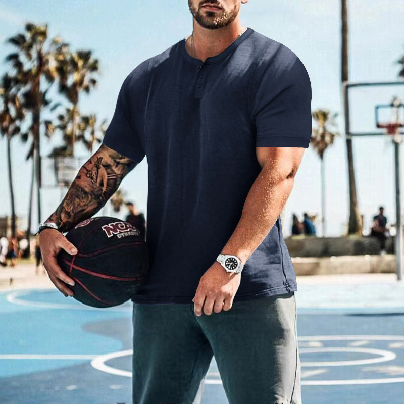 독립 역 크로스 보더 의류 남성용 t 헨리 크루넥 반팔 6XL 셔츠 헤비 티셔츠 남성용 슬림핏 솔리드 컬러 베이스 셔츠