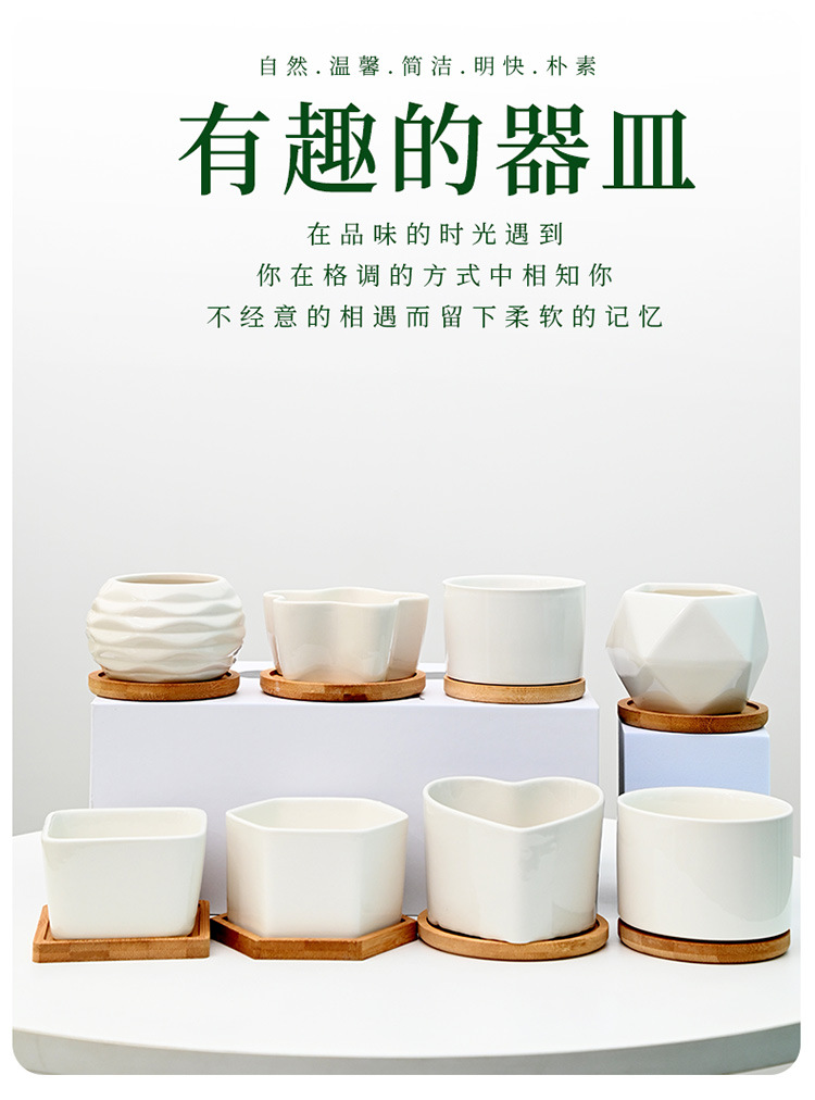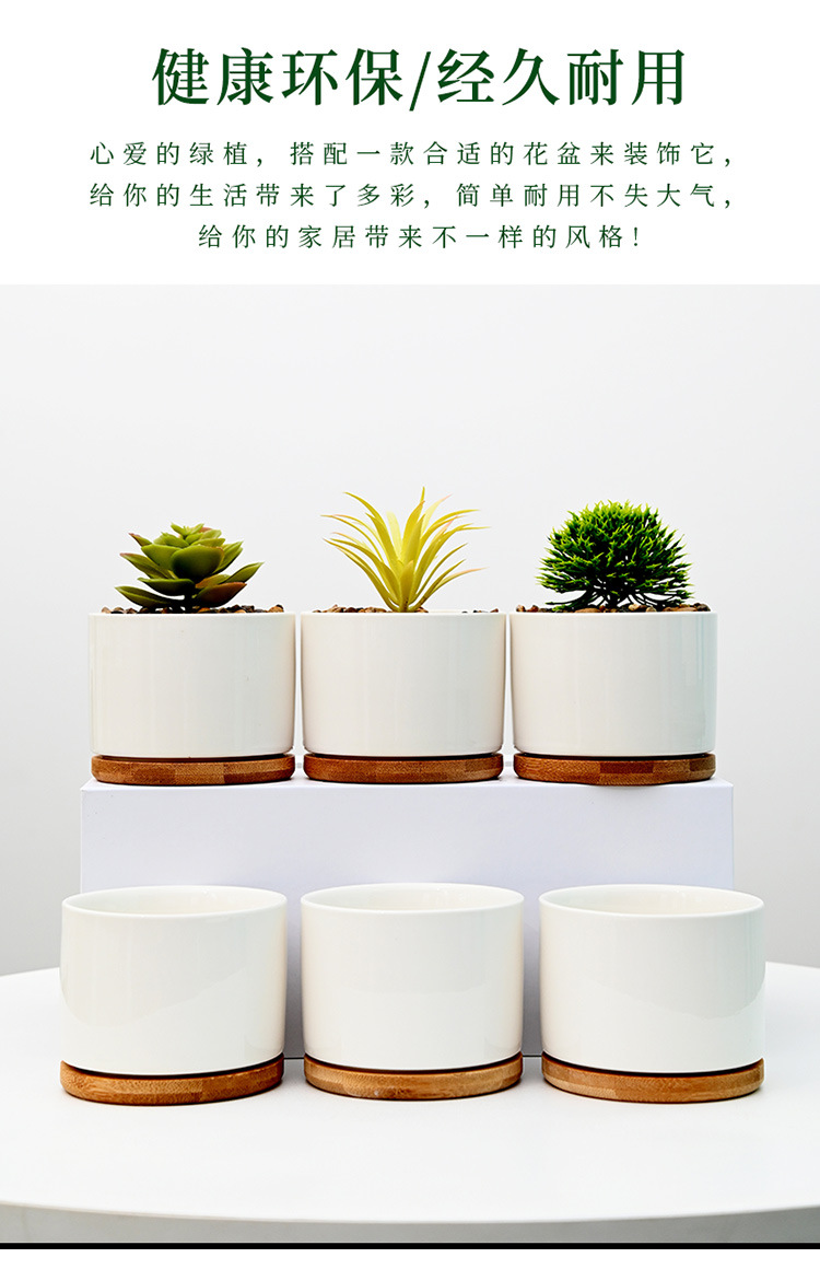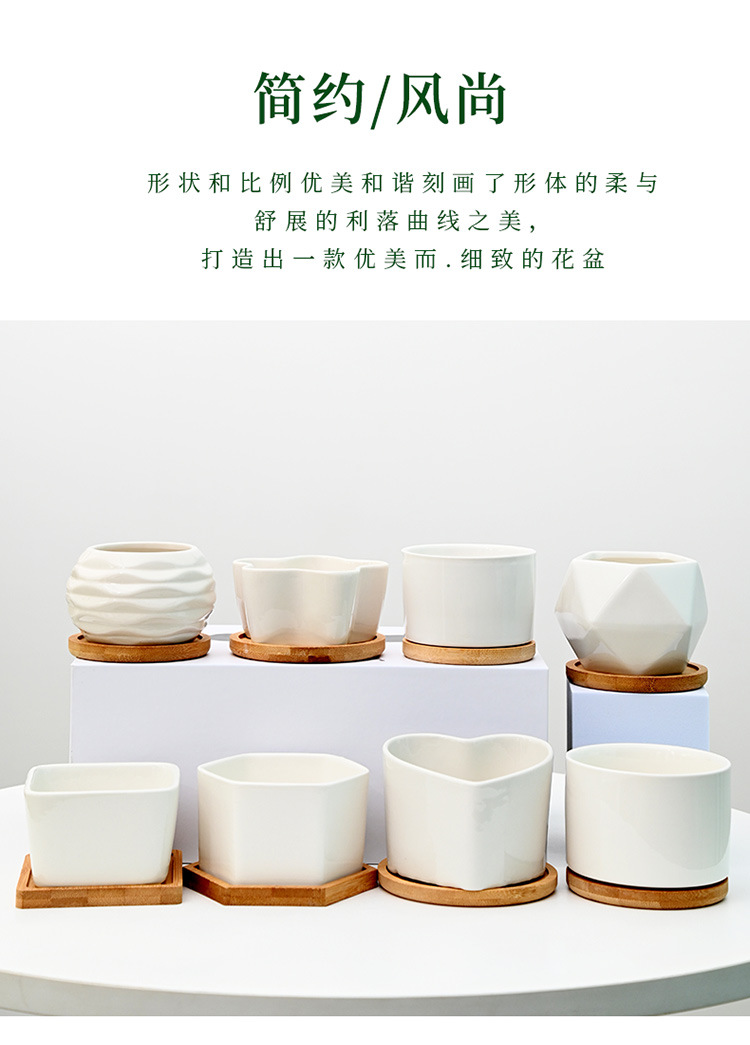 로고가 인쇄된 세라믹 화분, 심플한 백자 창작 분재 장식품, 대외 무역 국경 간 다육 도자기 냄비 도매
