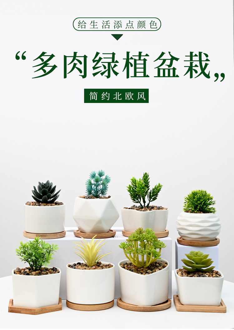 로고가 인쇄된 세라믹 화분, 심플한 백자 창작 분재 장식품, 대외 무역 국경 간 다육 도자기 냄비 도매스토어 가기