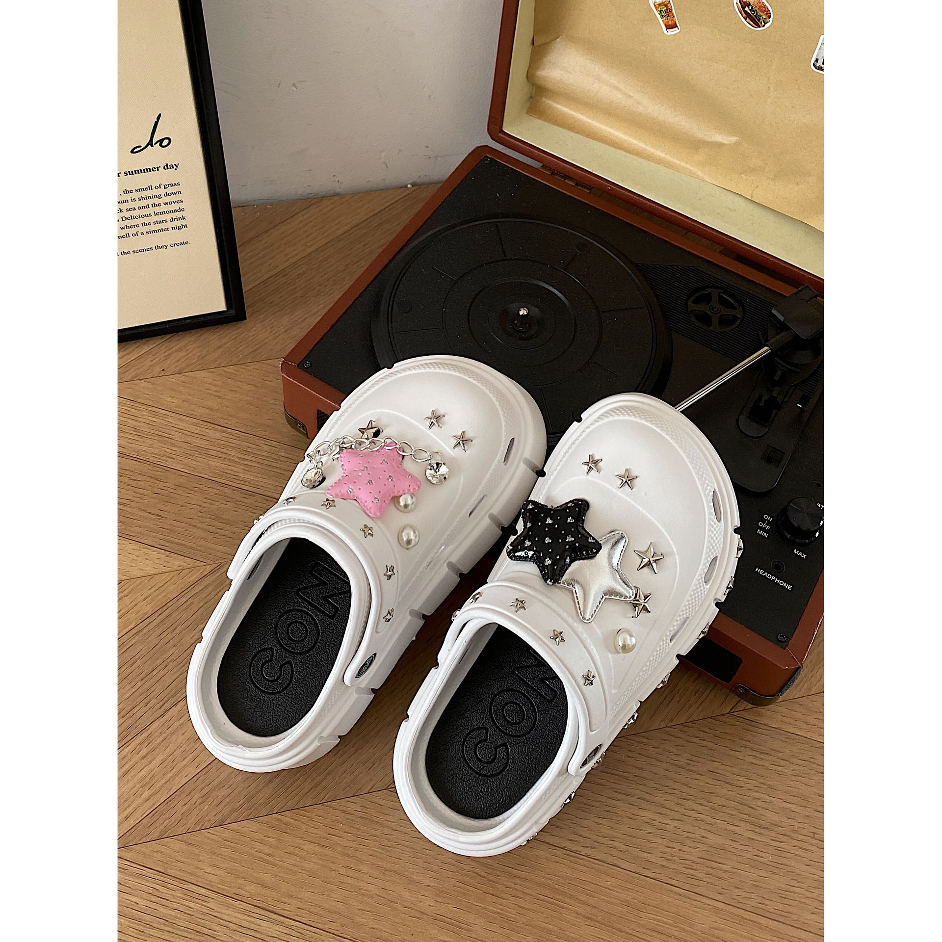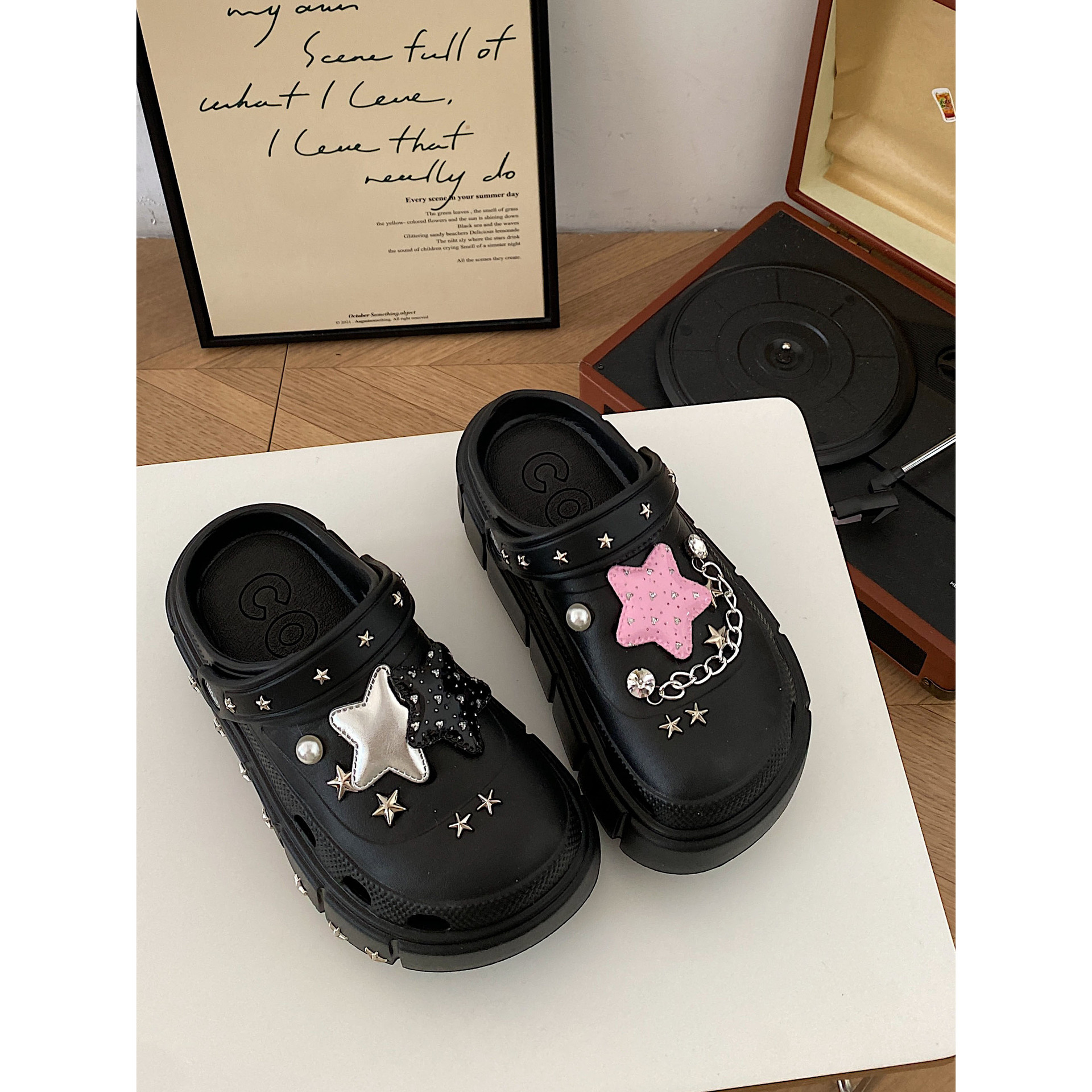 달콤한 쿨 파우더 5 개 별 구멍 신발 여성용 체인 Y2K 핫 걸 스타일 여름 두꺼운 단독 겉옷 샌들과 슬리퍼스토어 가기