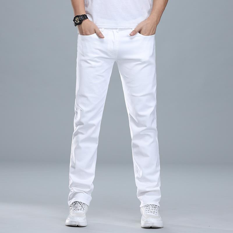 여름 흰색 청바지 남자의 순수한 새로운 캐주얼 바지 남자의 느슨한 스트레이트 바지 학생복