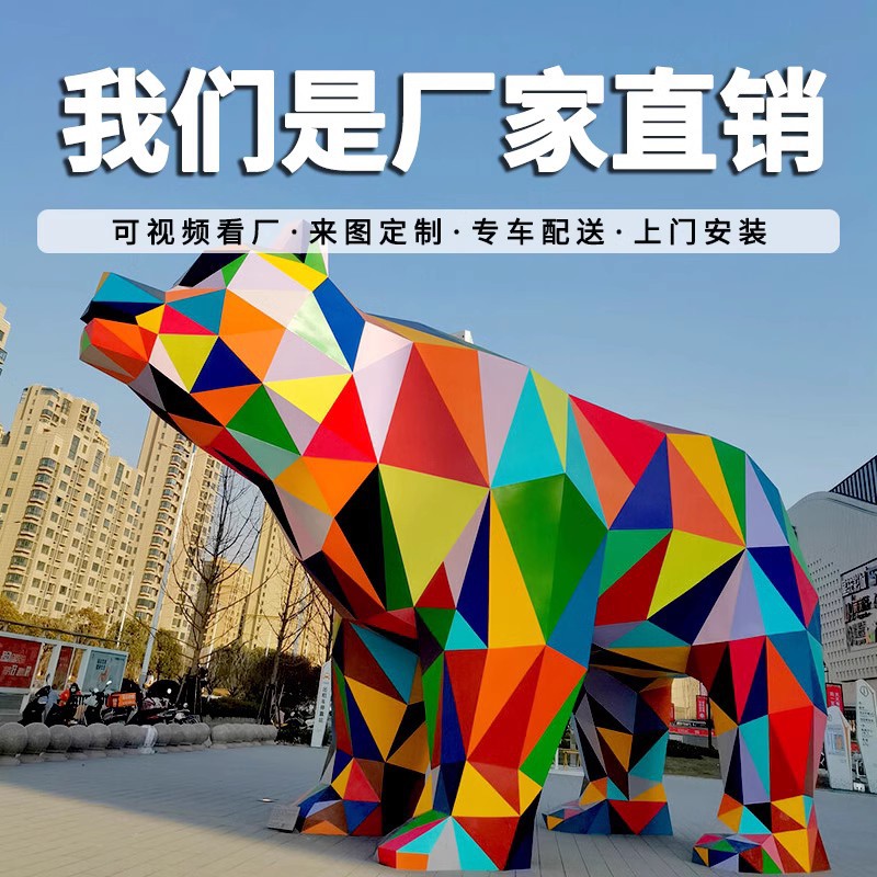 대형 스테인레스 스틸 곰 조각 기하학적 섹션 거울 동물 창조적 인 맞춤형 정원 야외 풍경 온라인 유명 인사 장식스토어 가기
