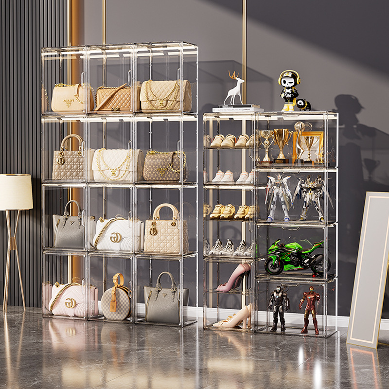가방 보관 유물 고급 디스플레이 캐비닛 구획화 휴대용 블라인드 박스 보관함 투명 자기 흡입 쌓을 수있는 신발 상자