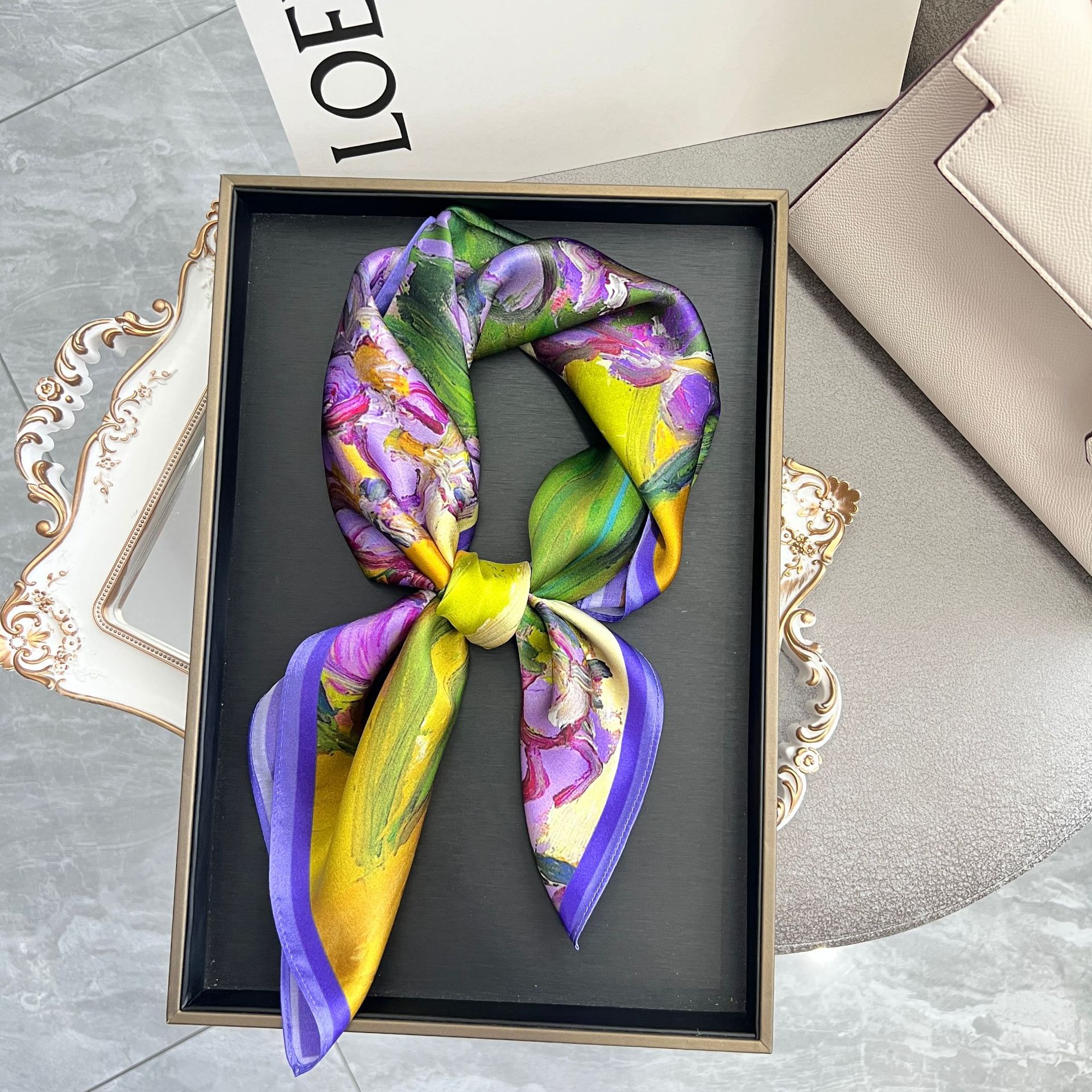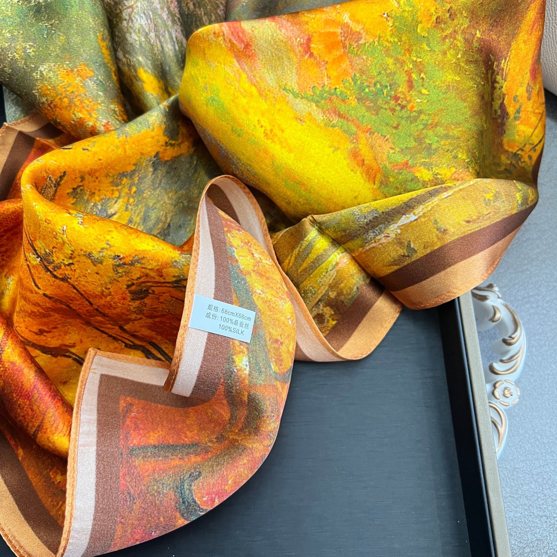 항저우 실크 100 뽕나무 실크 새로운 스타일 실크 가을 단풍 잎 실크 스카프 70cm 스퀘어 스카프 여성 숄스토어 가기